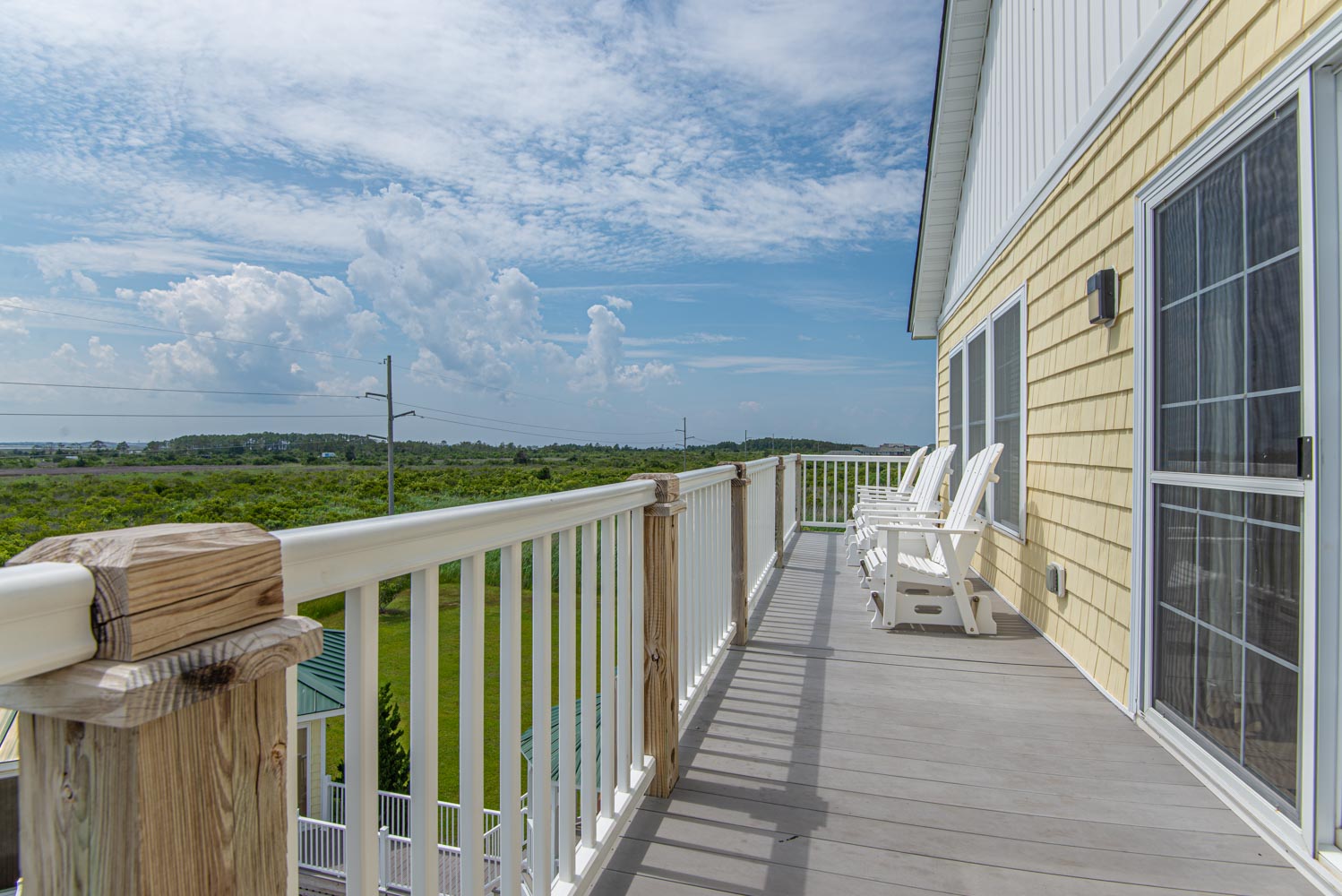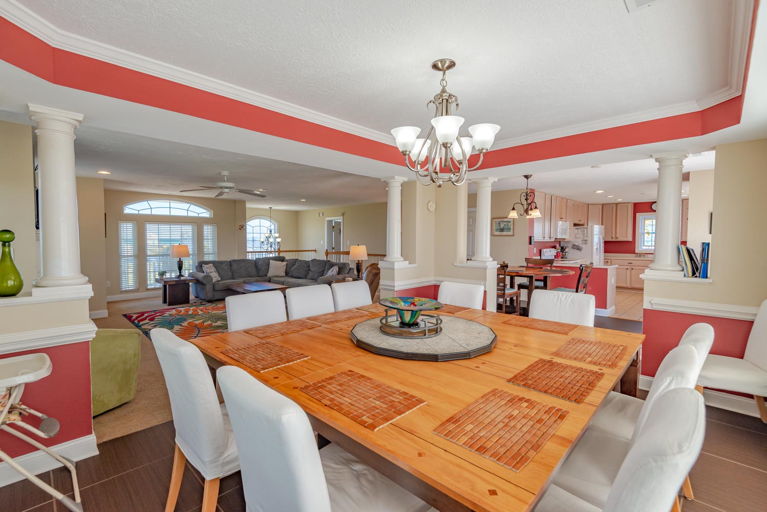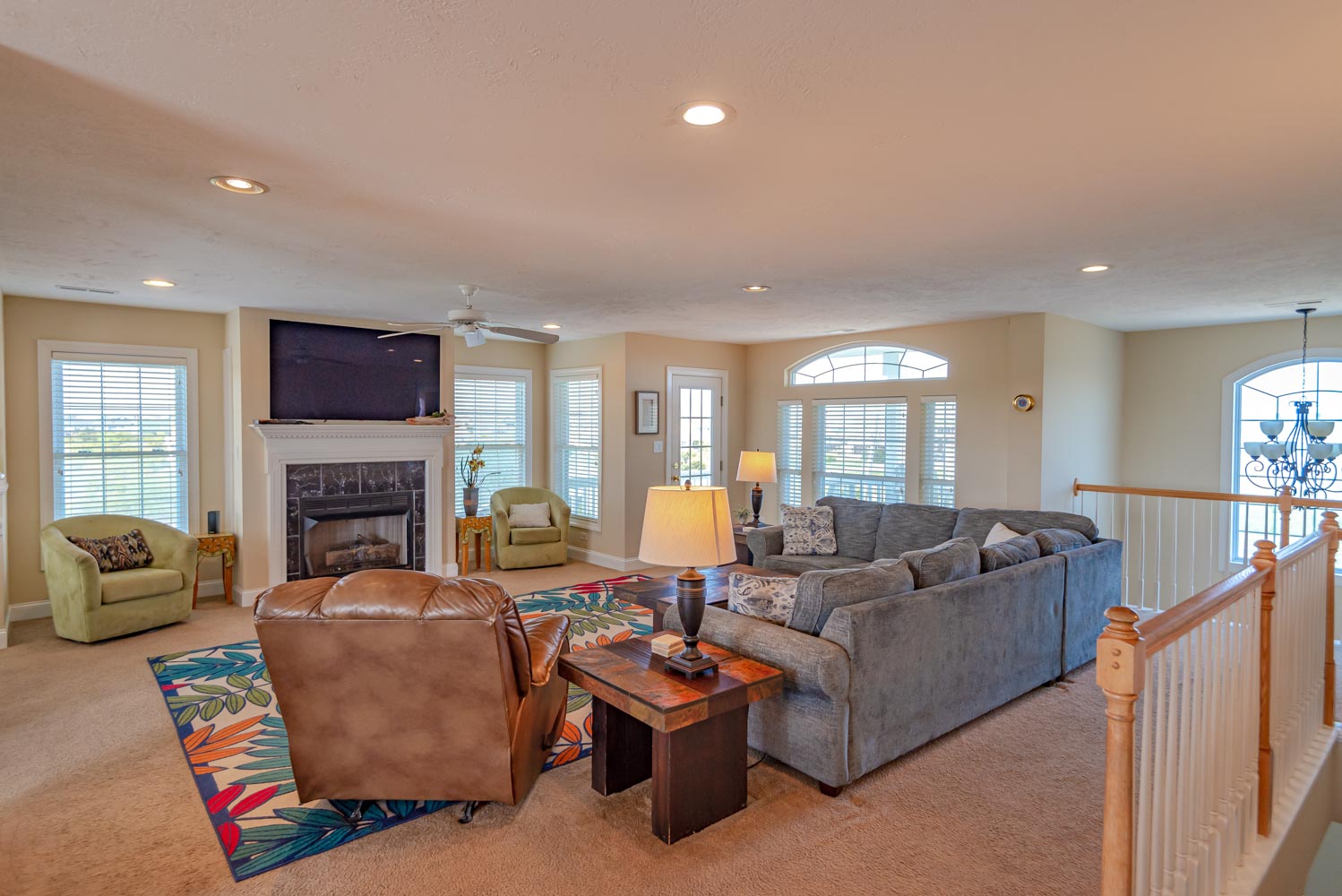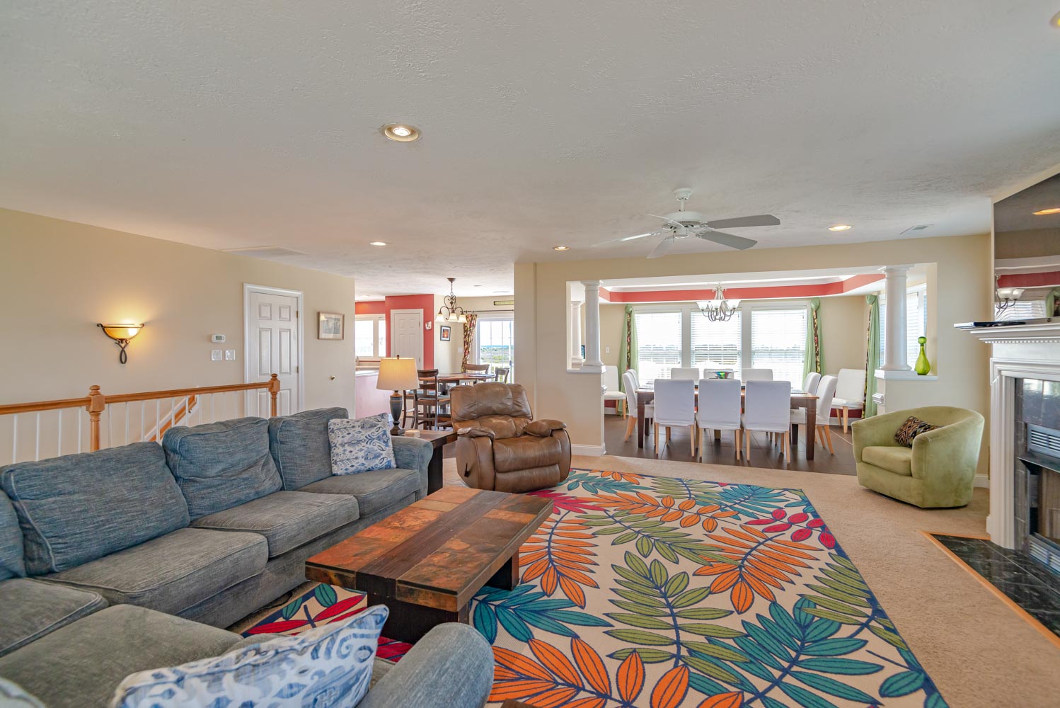 Top Level: Spacious & Beautifully Decorated Living/Dining/Kitchen Area, 65" OLED TV, Gas Fireplace, Ocean to Sound Views, Half Bath, Private Suite w/King, TV, & Full Bath w/Jacuzzi, Covered Deck, & Sun Deck.