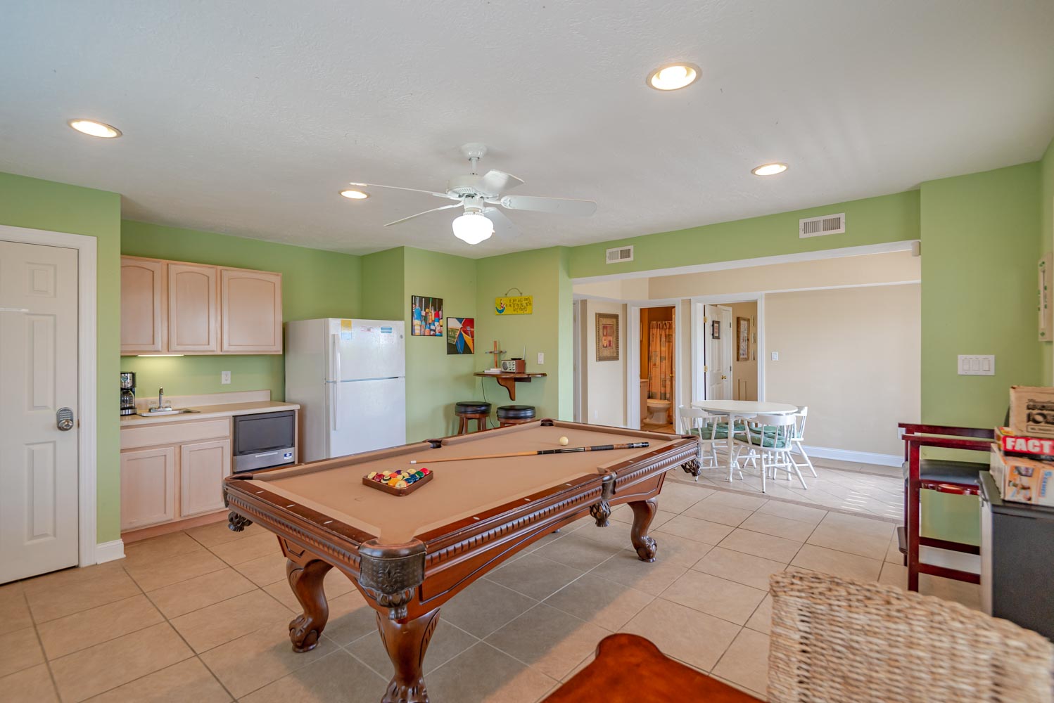 Level One: Rec. Room w/Pool Table, TV, Wet Bar w/Full Size Refrigerator, Laundry Area, 2 Bedrooms (Private Suite w/Queen, TV, & Full Bath & 1 w/Queen & TV), Full Hall Bath, 2 Covered Decks, & Access to Pool Patio Area.