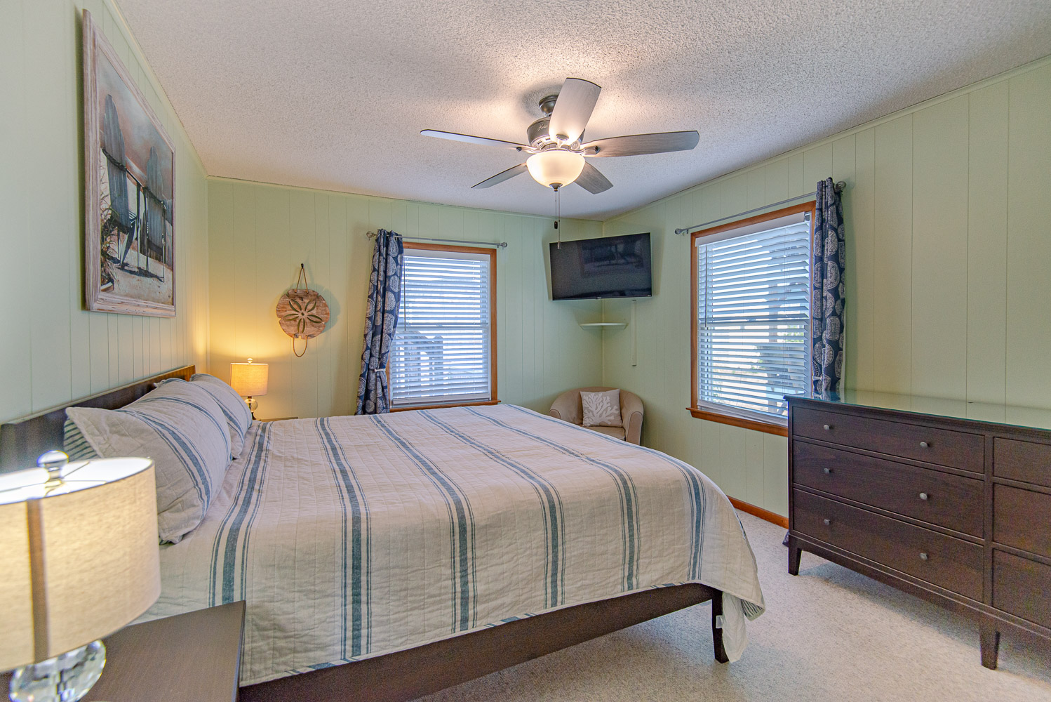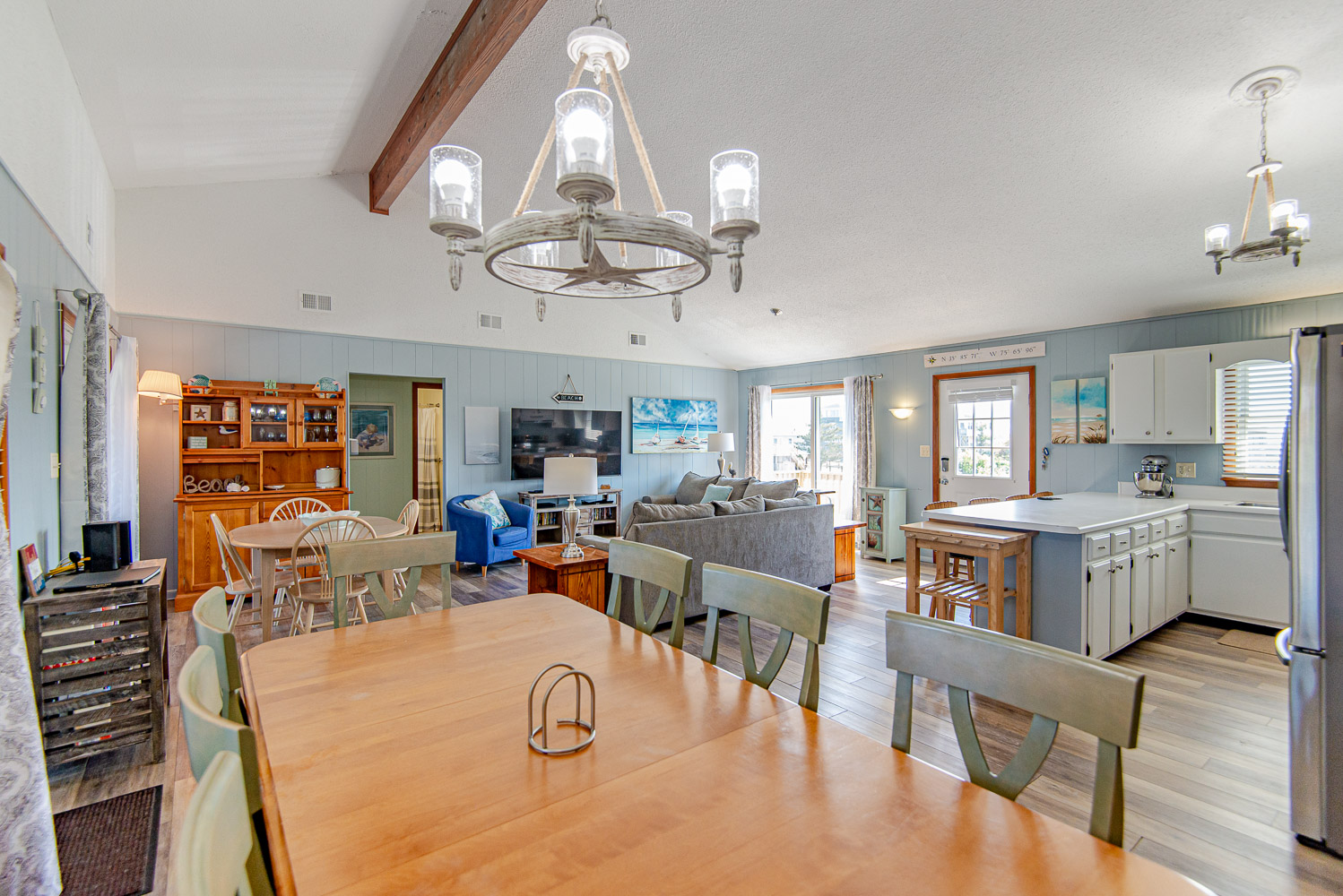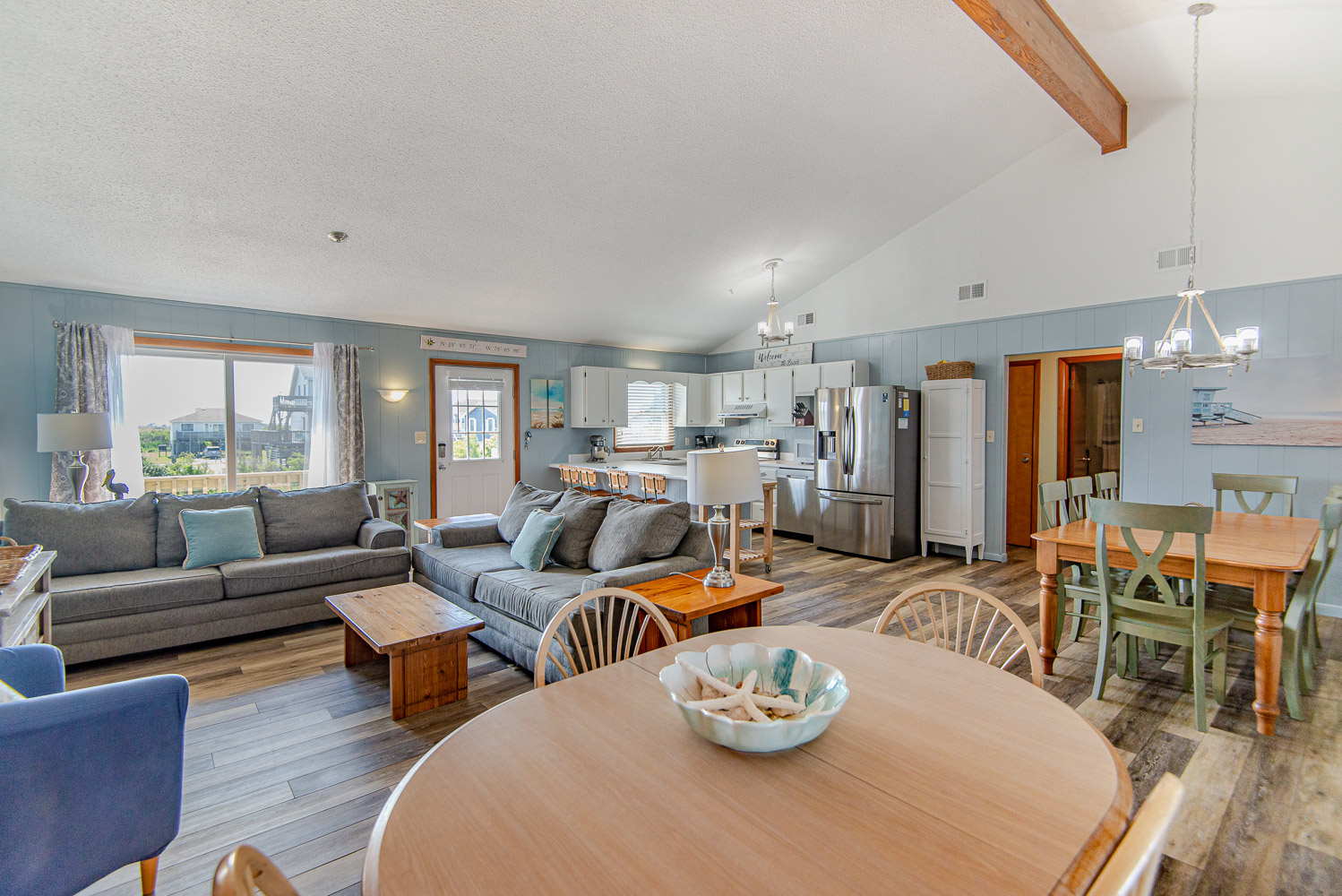Main Level: Living/Dining/Kitchen Area, TV, DVD, 4 Bedrooms (2 w/Kings, 1 w/Queen, TV; 1 w/Duo Bunk Set w/Trundle, TV), 2 Full Baths, Screen Porch w/Furniture, Sun Deck w/Furniture, and Steps to Observation Deck w/Furniture and Beautiful Ocean Views.