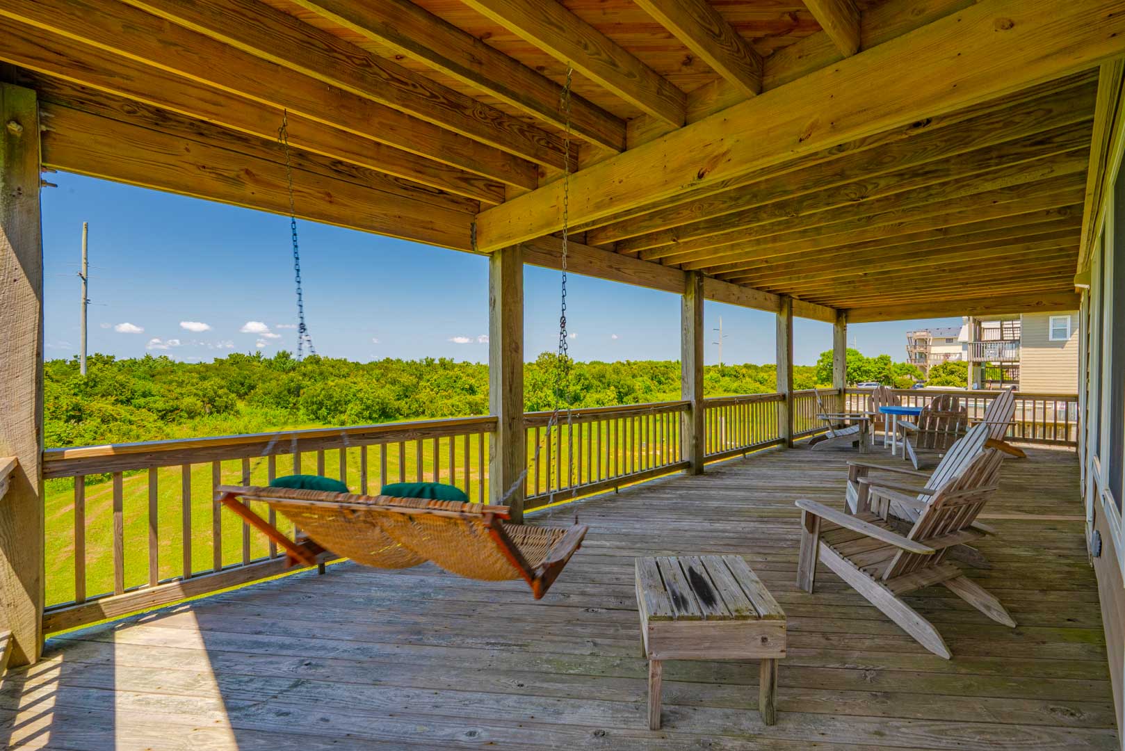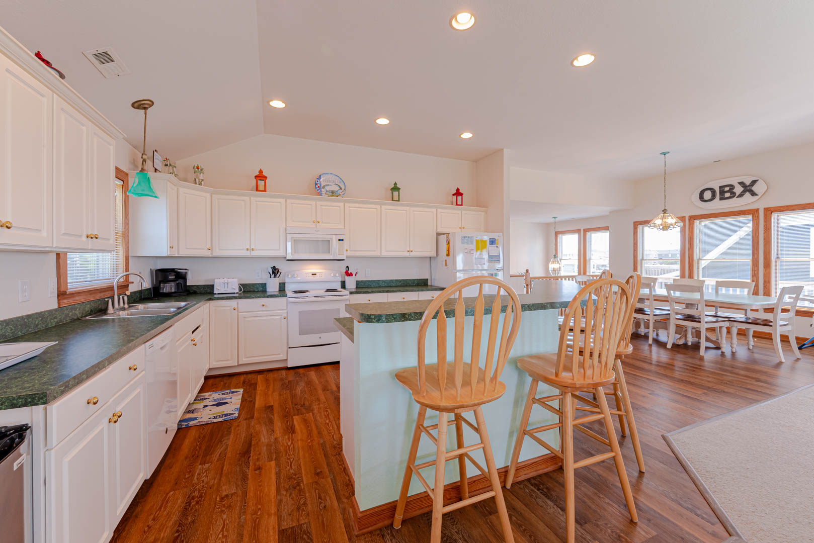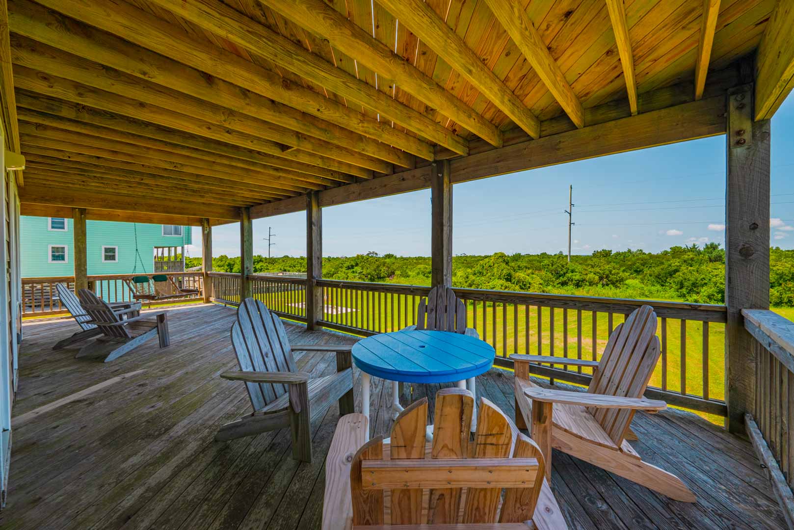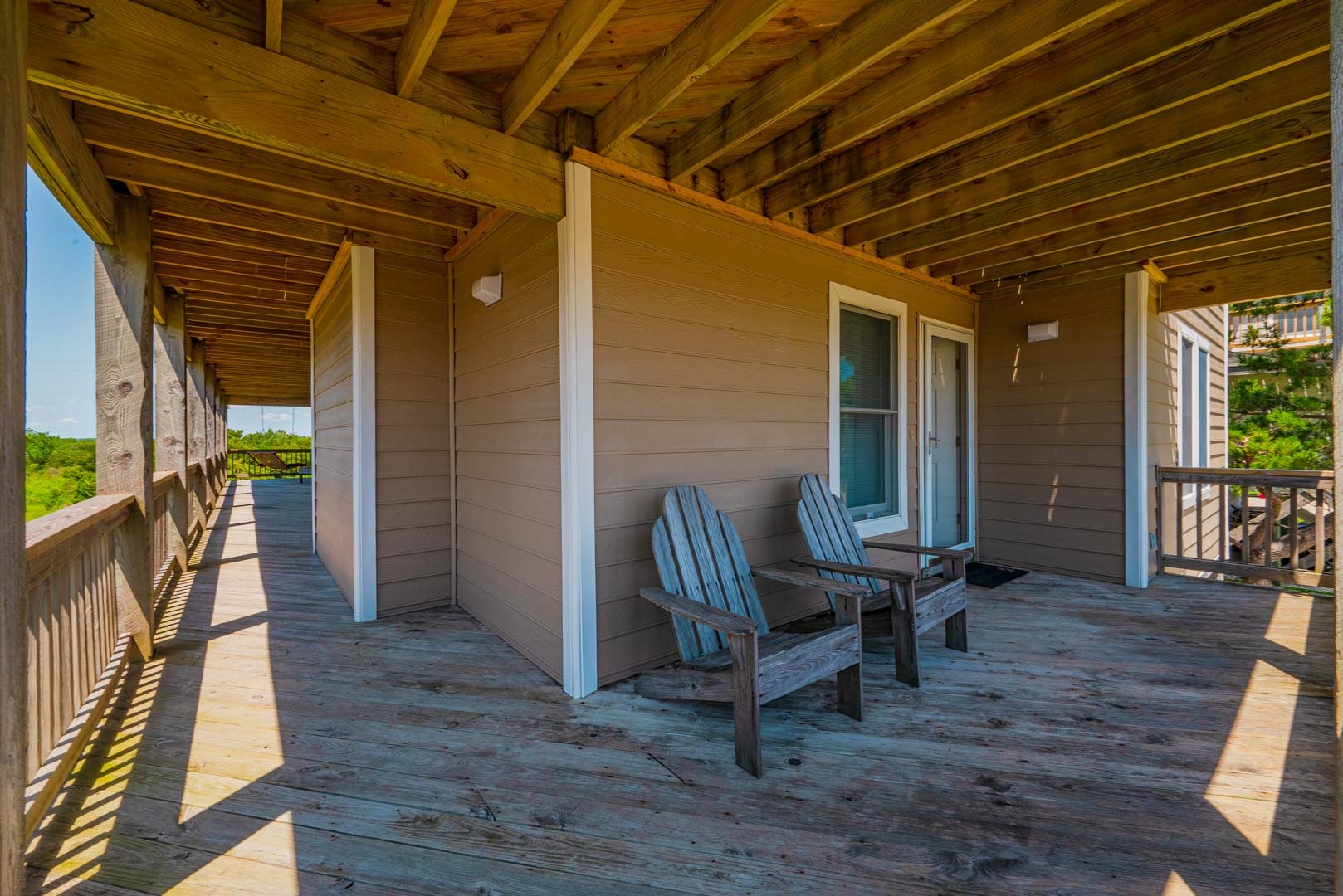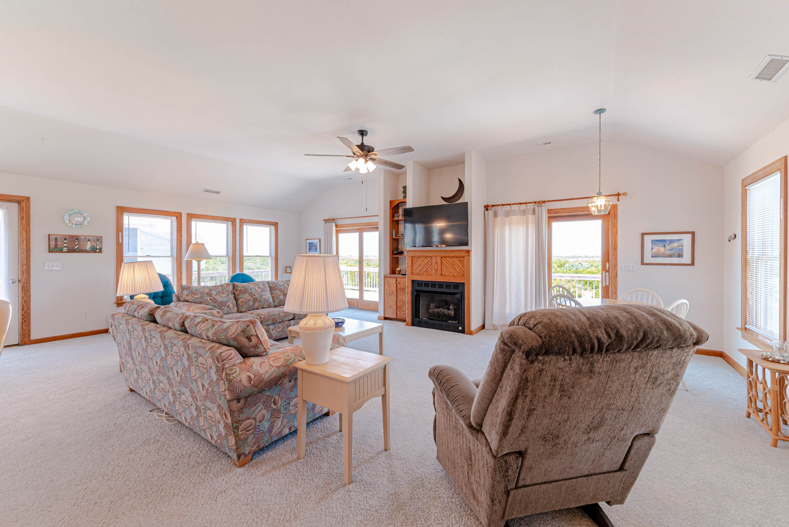 Top Level: Spacious Living/Dining/Kitchen Area, Flat Screen TV, Breakfast Bar, Half Bath, Private Suite w/King, TV, Full Bath w/Shower, and Large Wrap-Around Sun Deck w/Deck Furniture, Horizon Ocean, and Park Views.