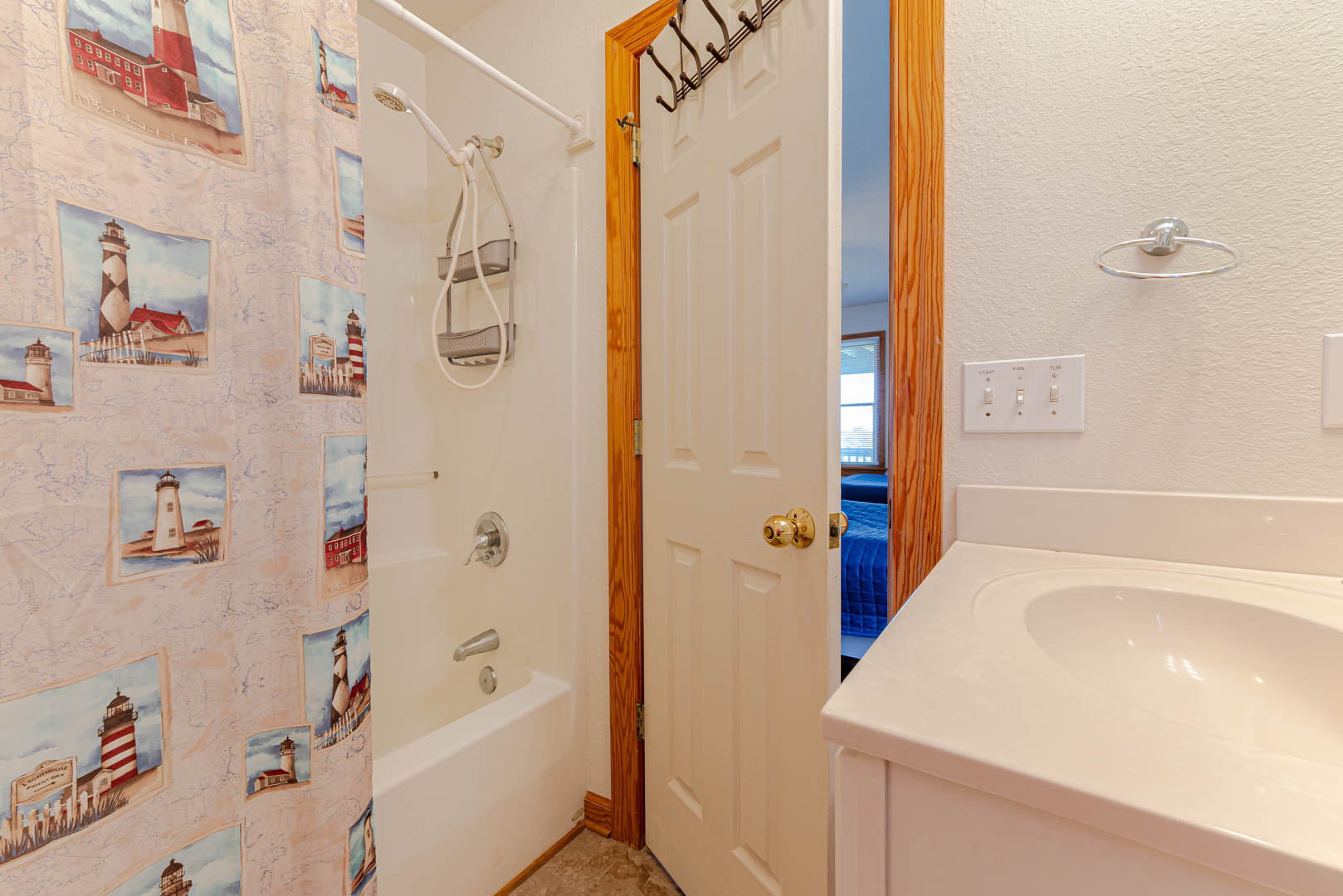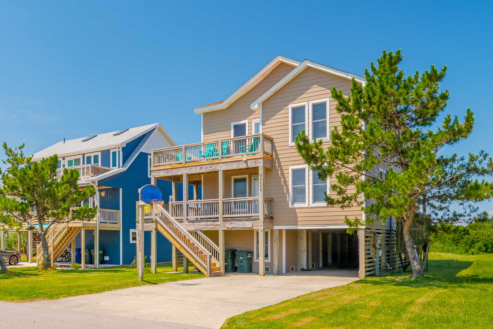 Ground Level: Parking for 5 Cars, Basketball Hoop, Covered Entry, Elevator, Picnic Table, Park Grill, Hot Tub, Enclosed Outside Shower, Fishing Cleaning Station, and Large Landscaped Yard.