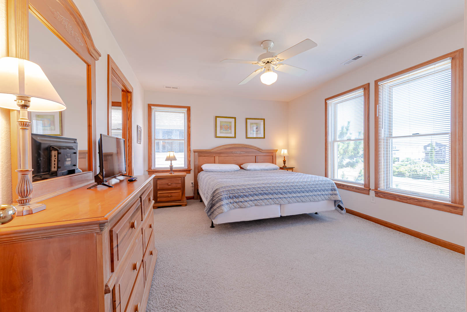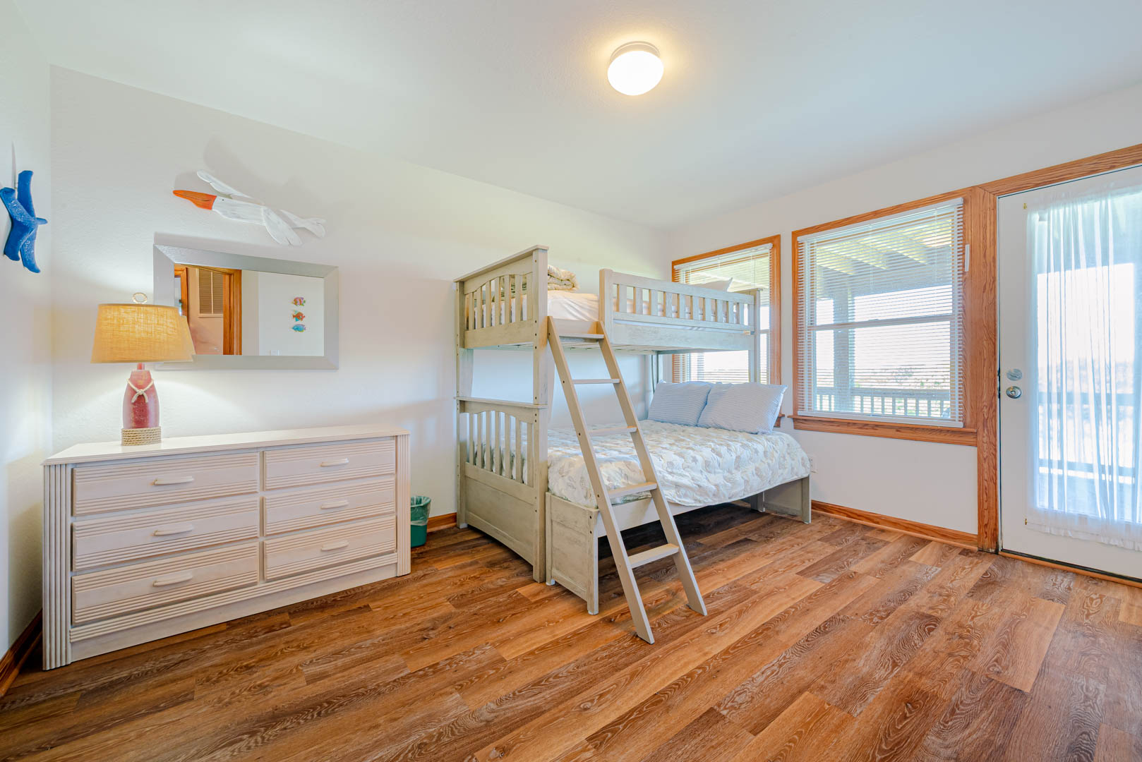 Mid Level: 5 Bedrooms (Private Suite w/2 Doubles, TV, Full Bath; 1 w/King, TV; 1 w/2 Singles; Shared Full Bath; 1 w/Queen, TV; 1 w/Duo Bunk; Shared Full Bath); Wrap-Around Covered Deck w/Deck Furniture and Terrific Views.