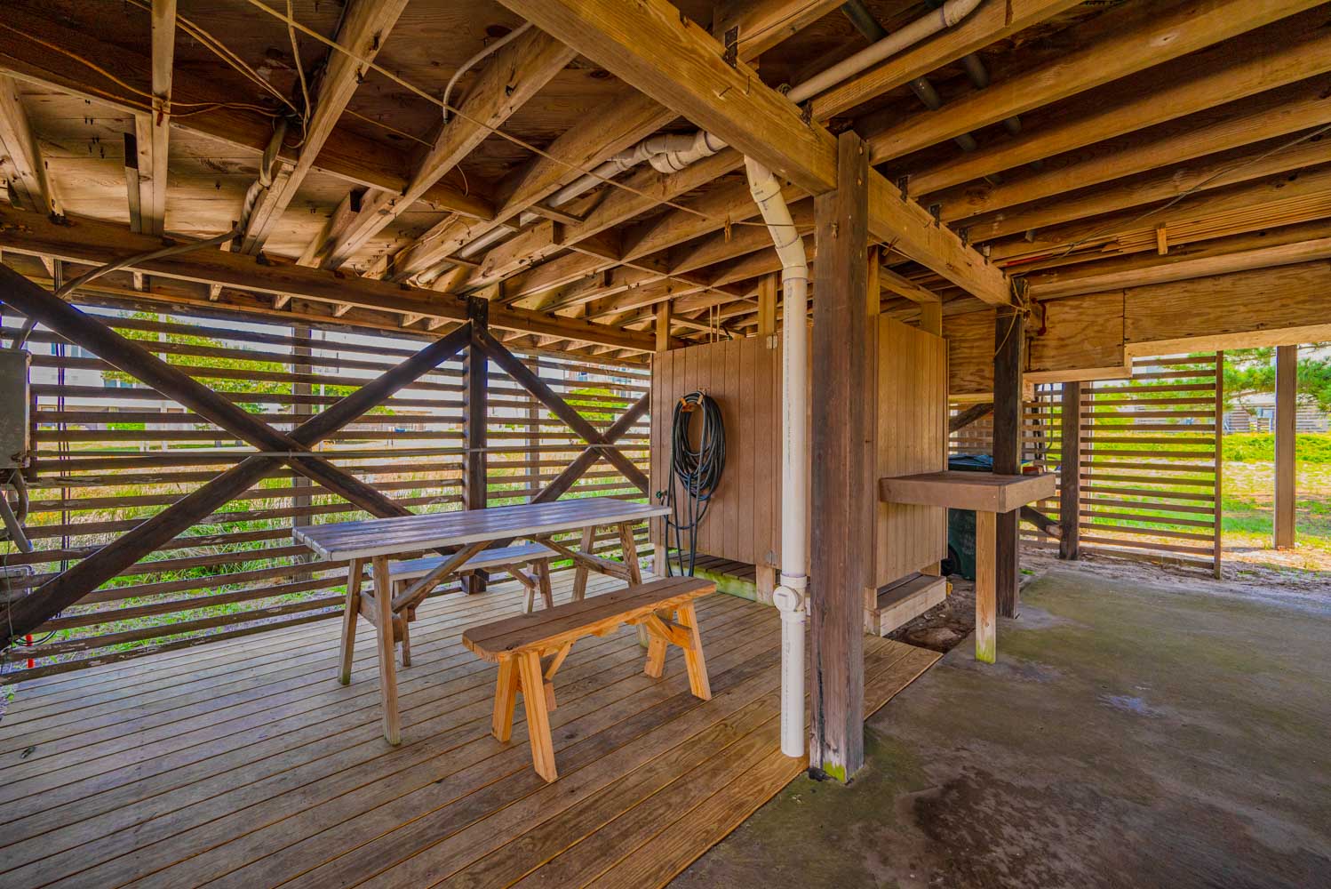 Ground Level: Parking for 3 Cars, Steps to Entry, Utility Room w/Washer/Dryer, & Half Bath, Gas Grill, Picnic Table, & Enclosed Outside Shower.