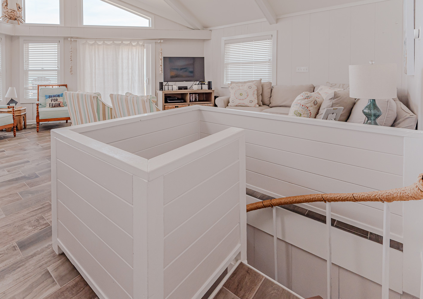 Top Level: Accessed Via Interior Spiral Staircase, Exterior Staircase, Living/Dining/Kitchen Areas, Fantastic Unobstructed Ocean Views, TV w/DVD Player; Shared Full Hall Bath; Bedroom w/Queen, Private Sun Deck w/Deck Furniture.