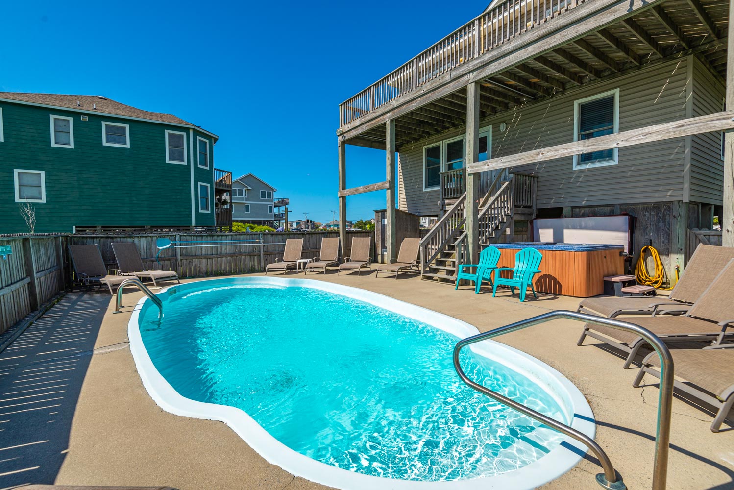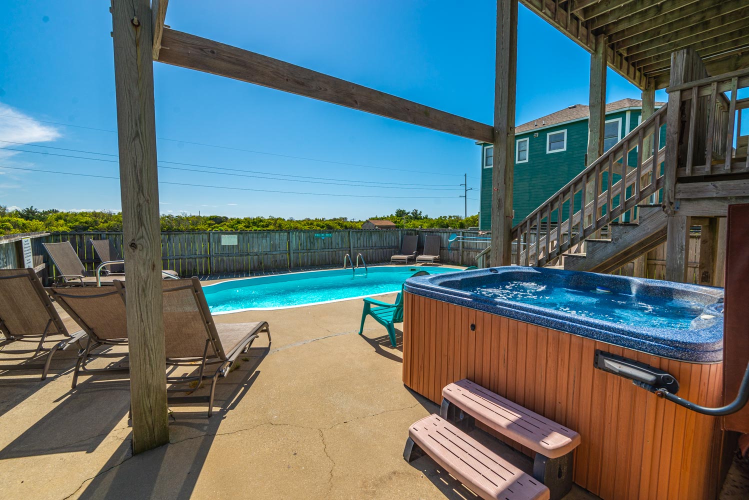 Ground Level: Parking for 5 Cars, Covered Entry, Private Swimming Pool - Open Seasonally, Lounge Chairs, 6 Person Hot Tub, Enclosed Outside Shower, & Park Grill.