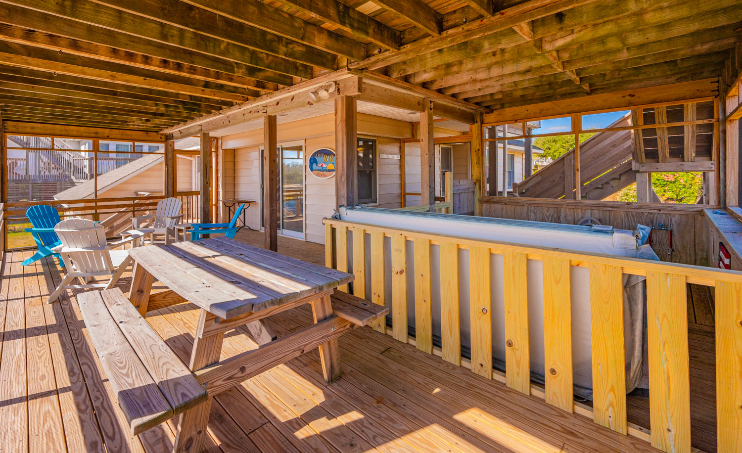Mid Level: Large Screen Porch, Hot Tub, Sitting Area, Picnic Table, 4 Bedrooms (2 w/Kings, TVs; 1 w/Queen, TV; 1 w/Queen); 2 Full Jack-n-Jill Baths.