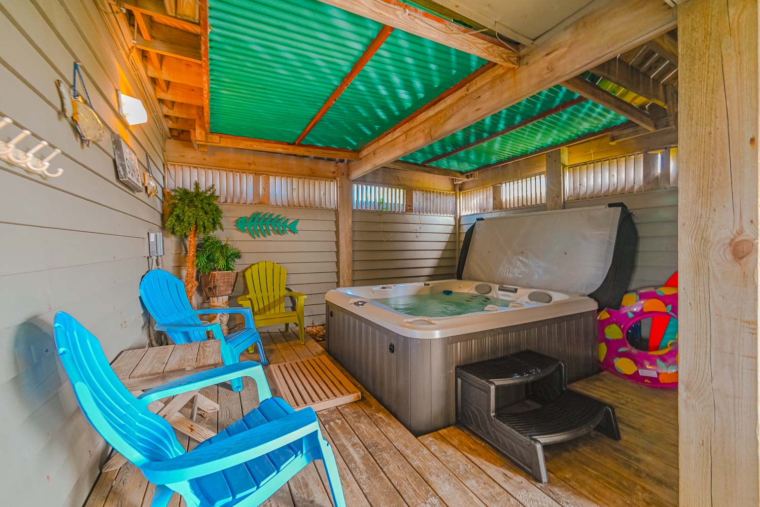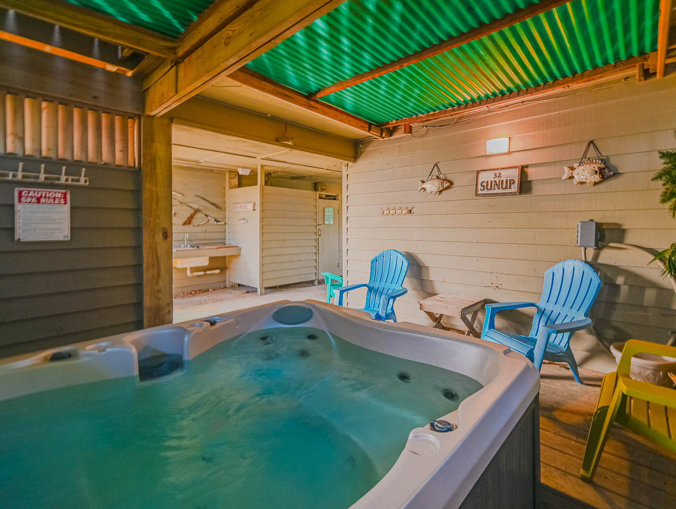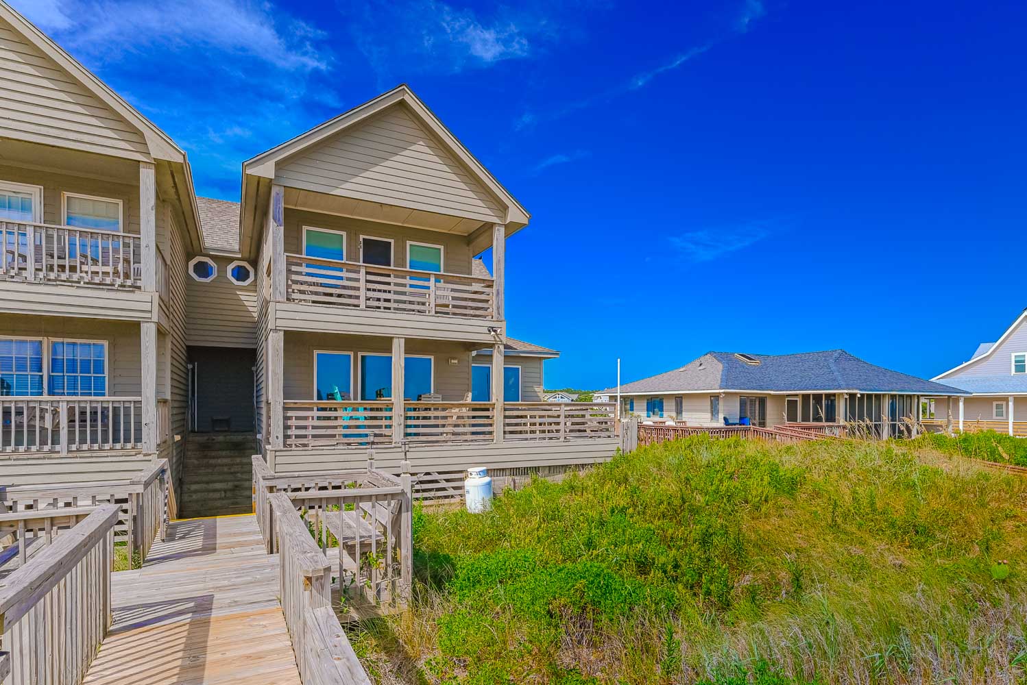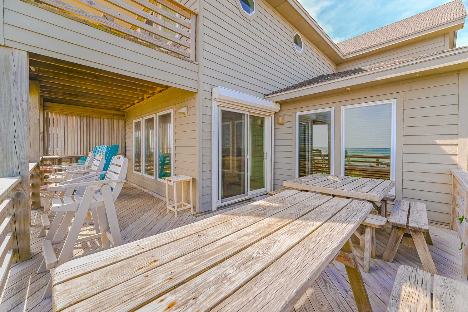 Ground Level: Parking for 3 Cars, Steps to Covered Entry, Fish Cleaning Station, Storage Room, Picnic Table, Enclosed Outside Shower w/Dressing Area, Hot Tub, Walkway to Beach, & Semi-Private Dune Deck.