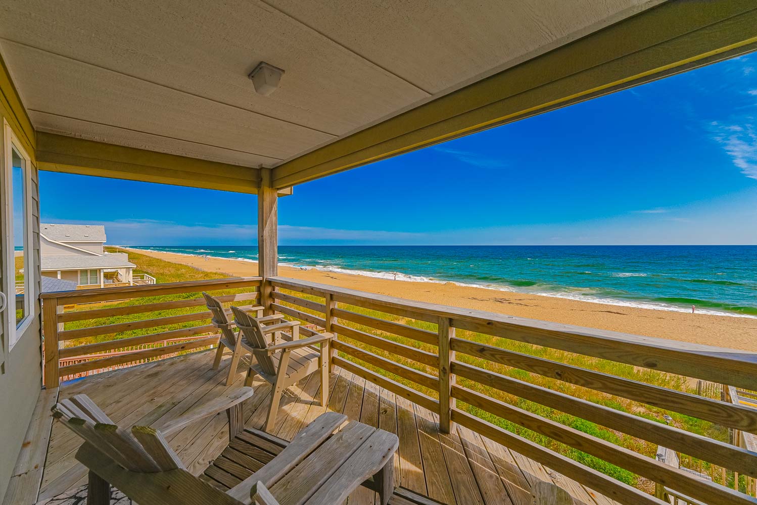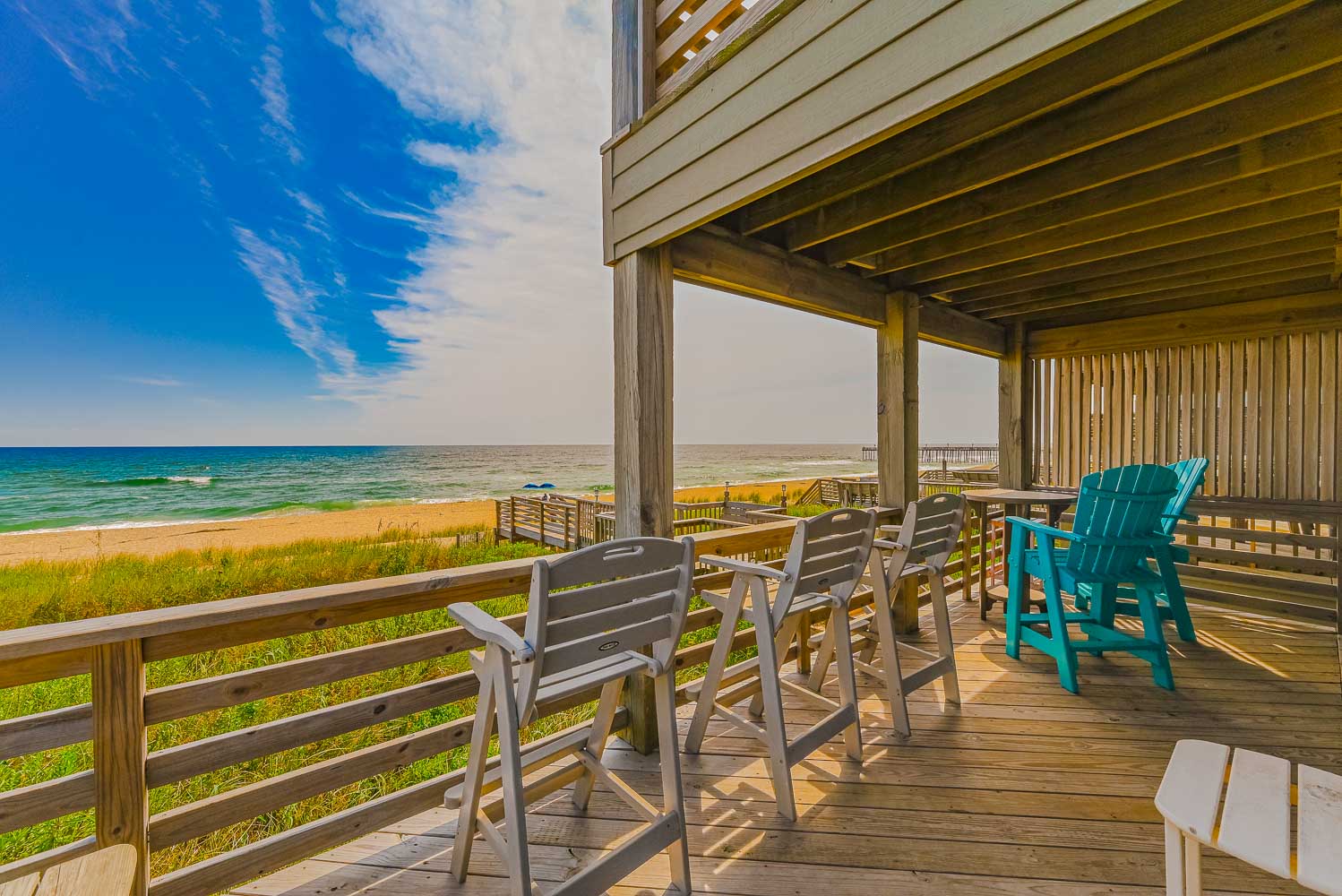 Top Level: 3 Bedrooms (Oceanfront Private Suite w/King, TV, DVD, Full Bath w/Tub & Shower, & Private Covered Deck w/Deck Furniture & Endless Ocean & Beach Views, 1 w/Queen & TV (Gaming ONLY), 1 w/2 Singles), Full Hall Bath w/Tub/Shower Combo, & Laundry Area.