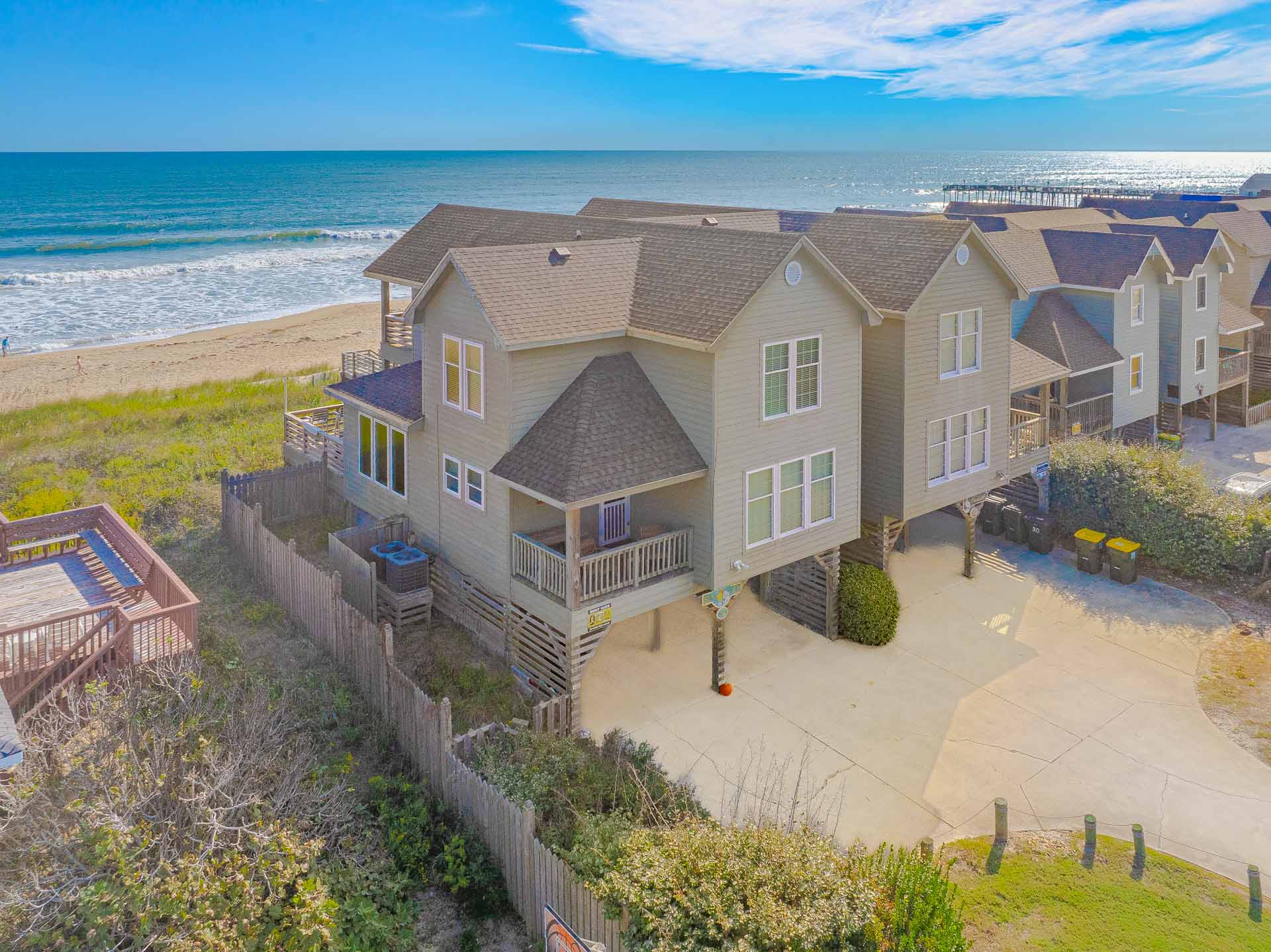 Ground Level: Parking for 3 Cars, Steps to Covered Entry, Fish Cleaning Station, Storage Room, Picnic Table, Enclosed Outside Shower w/Dressing Area, Hot Tub, Walkway to Beach, and Semi-Private Dune Deck.