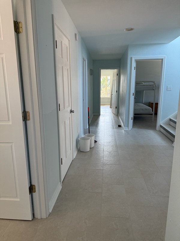 Mid Level: 6 Bedrooms (4 Private Suites w/Kings; 2 Private Suite w/Queens, Private Suite w/2 Bunk Sets; Private Suite w/Duo Bunk and Bunk Set), 6 Full Baths, Laundry Area, and Covered Porch w/Deck Furniture and Steps to Ground Level.