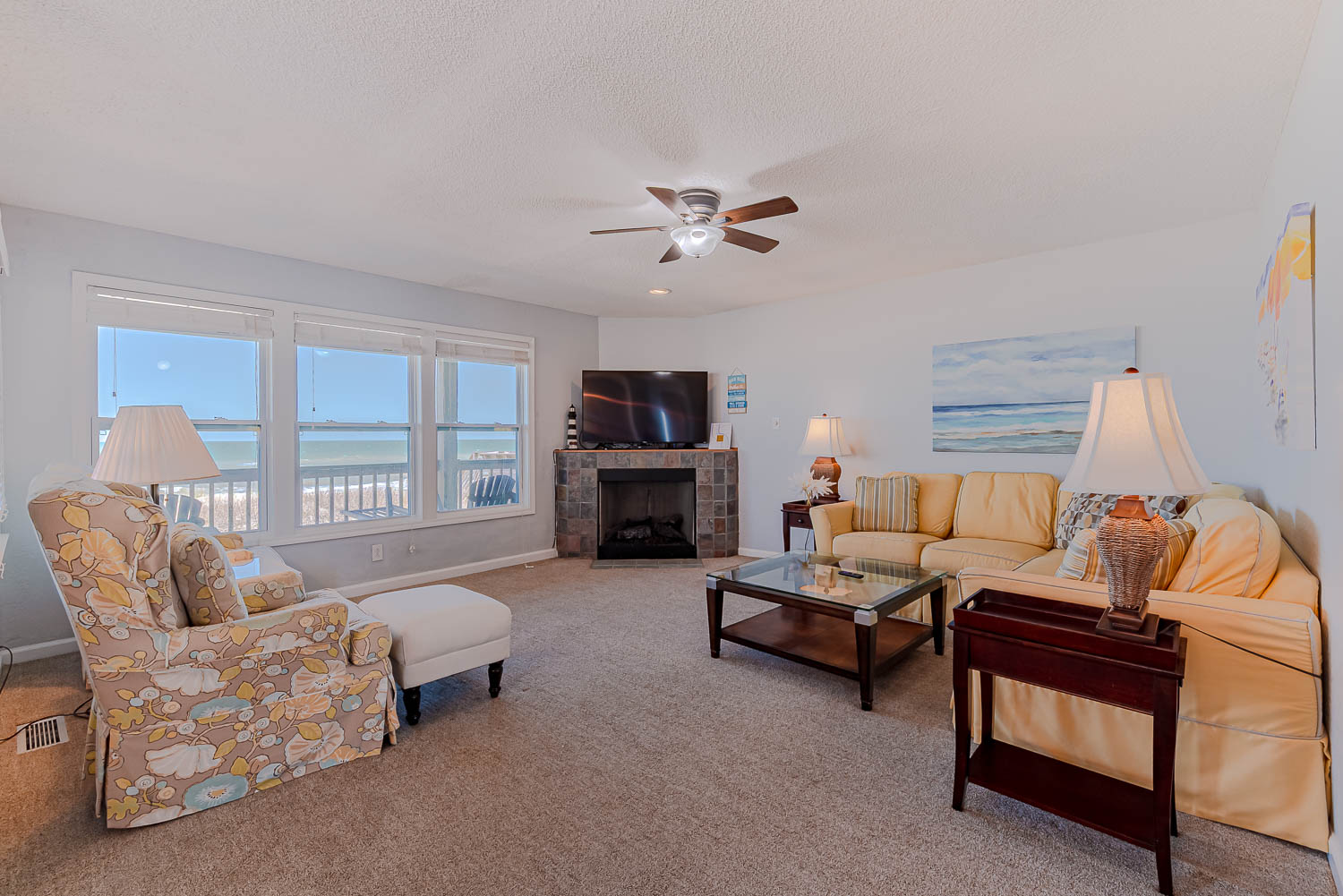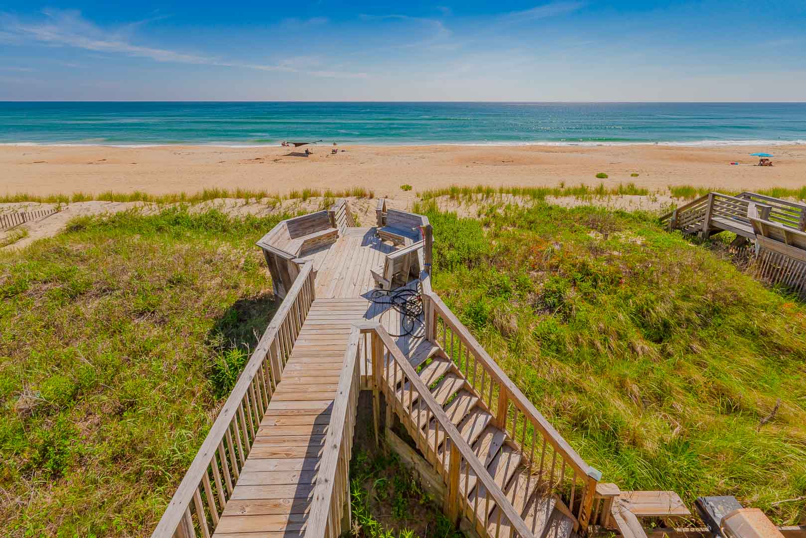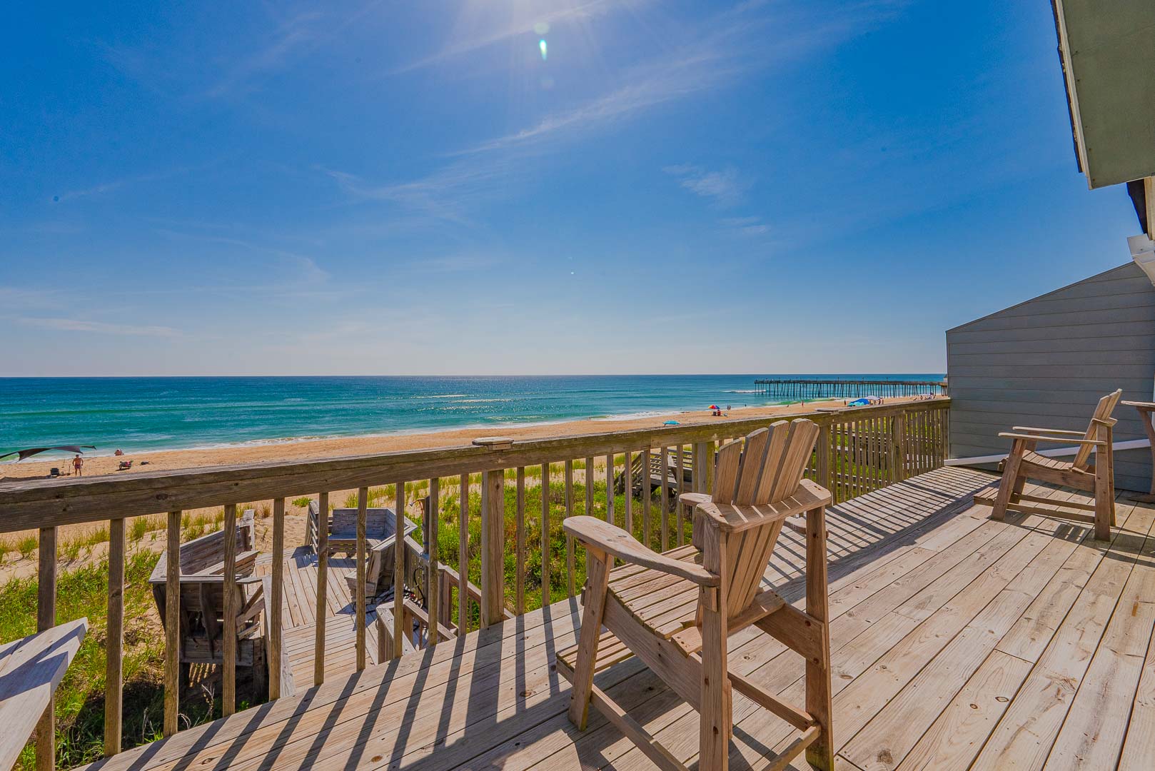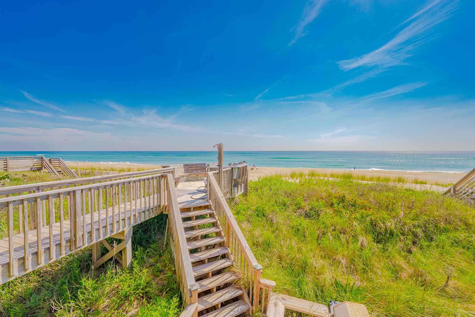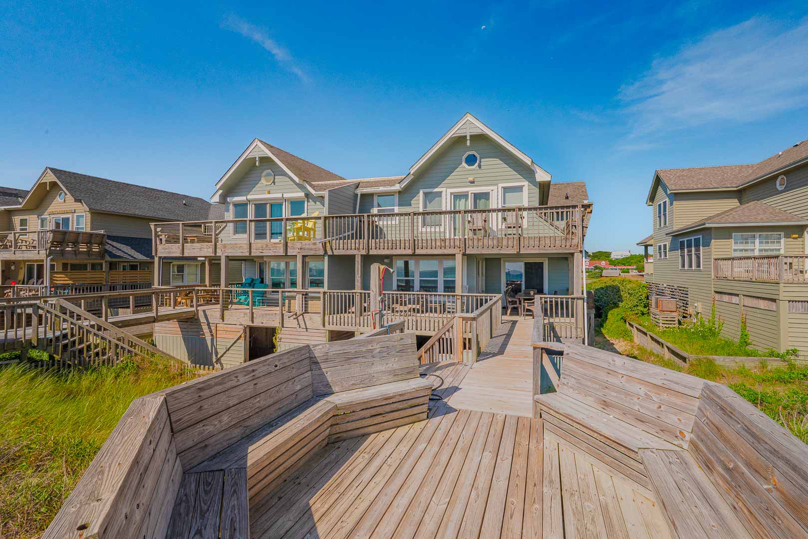Mid level: Living/Dining/Kitchen, Fabulous Ocean Views, TV, DVD, Half Bath, Wet Bar, Bedroom w/Queen, TV, & DVD, Full Bath, Front Covered Deck, Oceanfront Covered Deck, & Private Walkway to Beach w/Dune Top Deck.