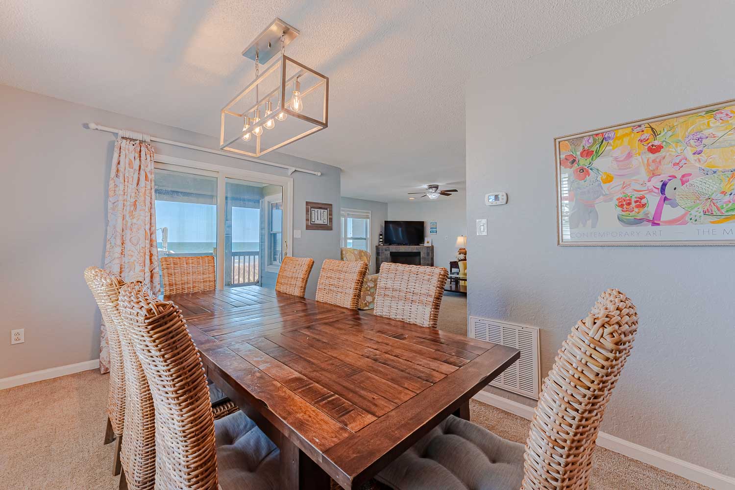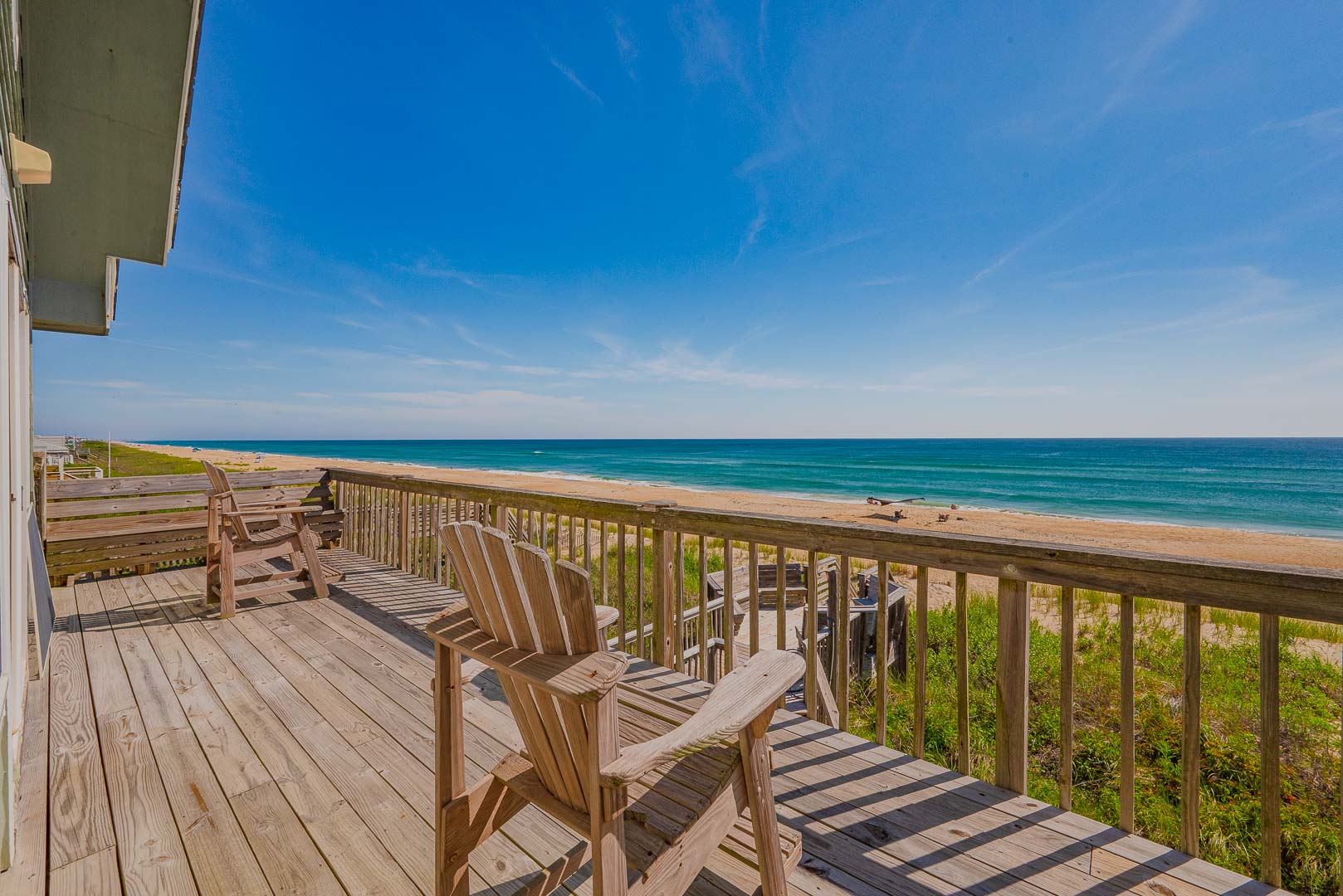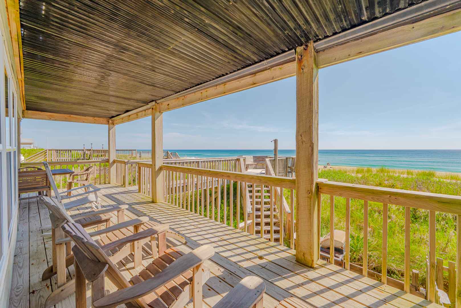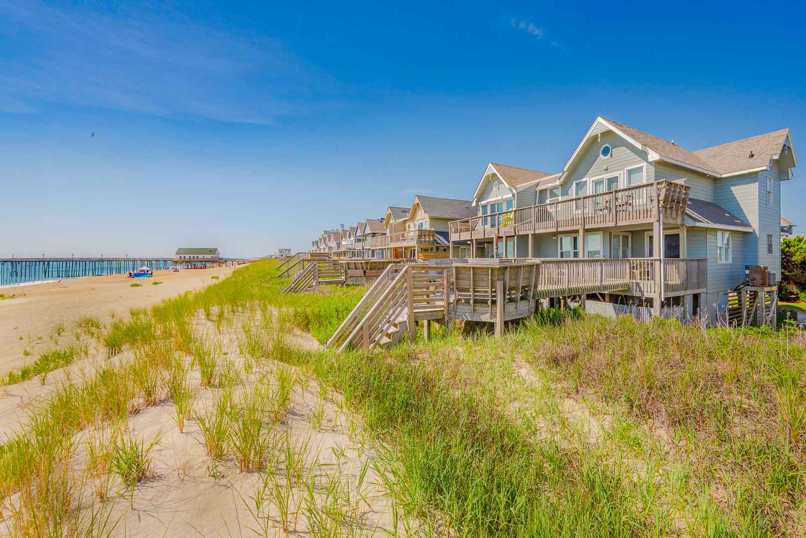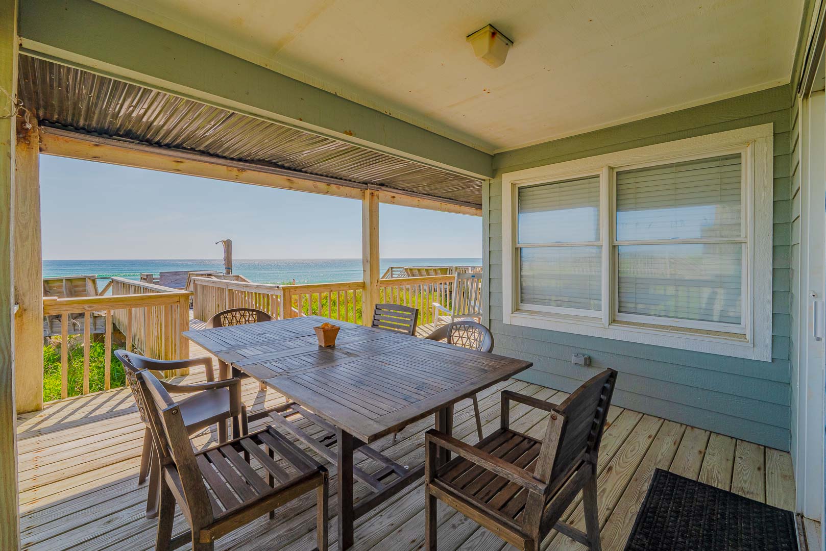 Mid level: Living/Dining/Kitchen, Fabulous Ocean Views, TV, DVD, Half Bath, Wet Bar, Bedroom w/Queen, TV, & DVD, Full Bath, Front Covered Deck, Oceanfront Covered Deck, & Private Walkway to Beach w/Dune Top Deck.