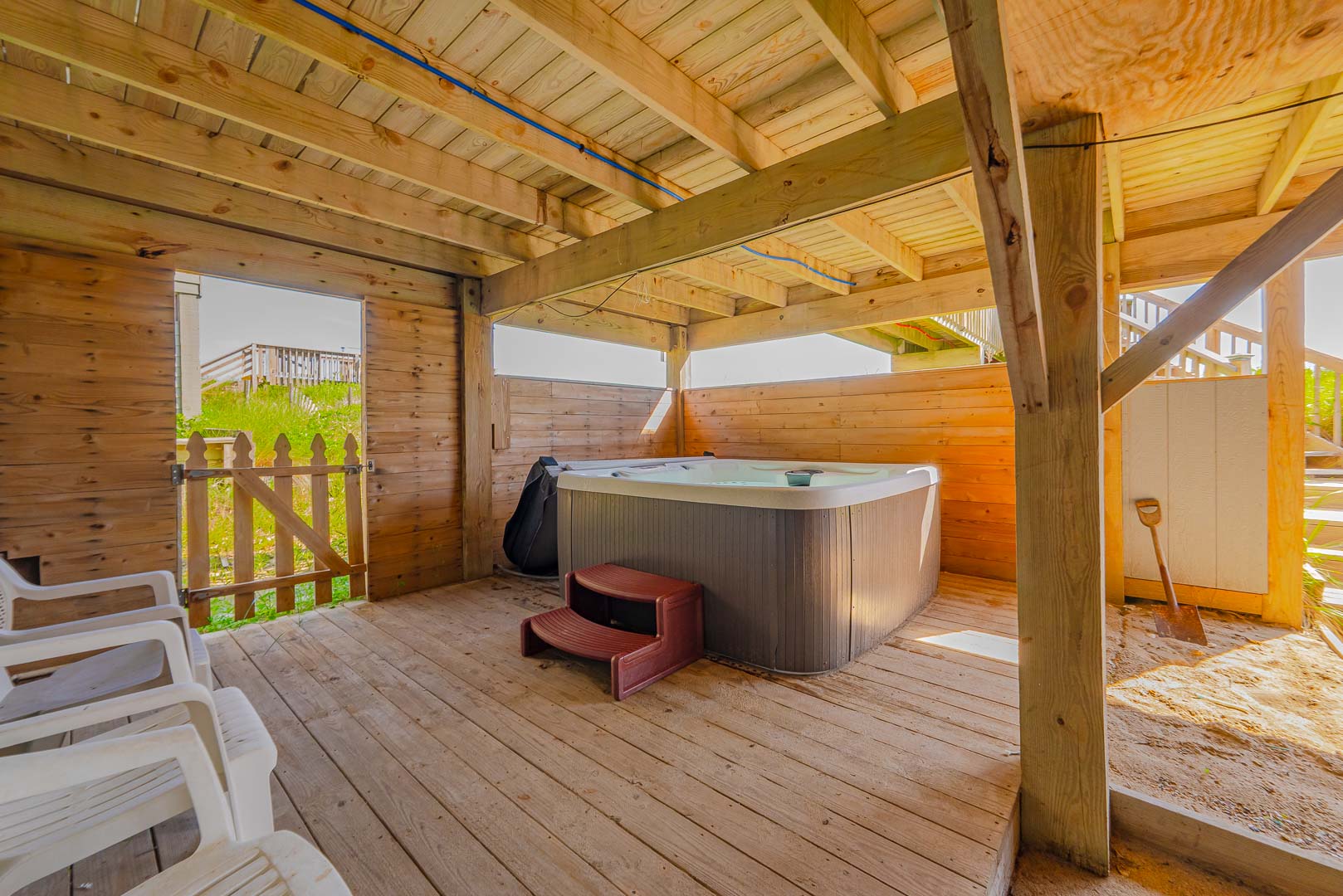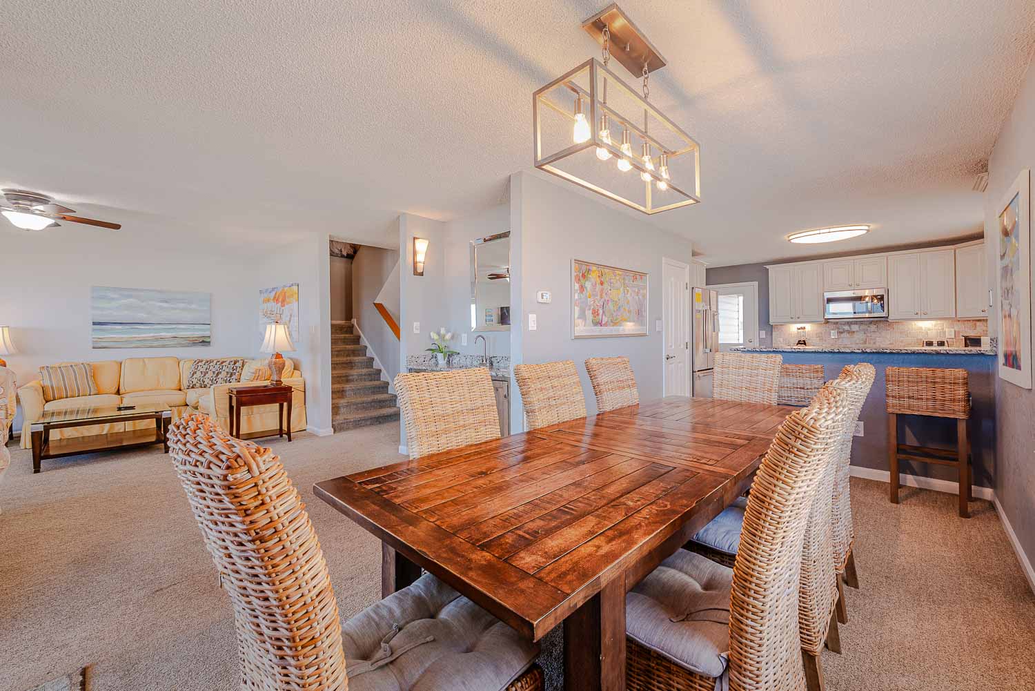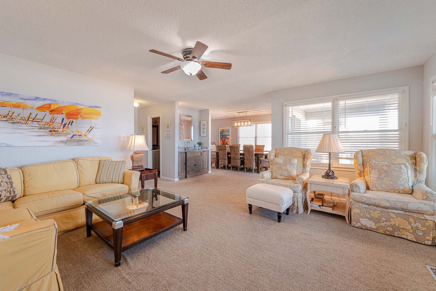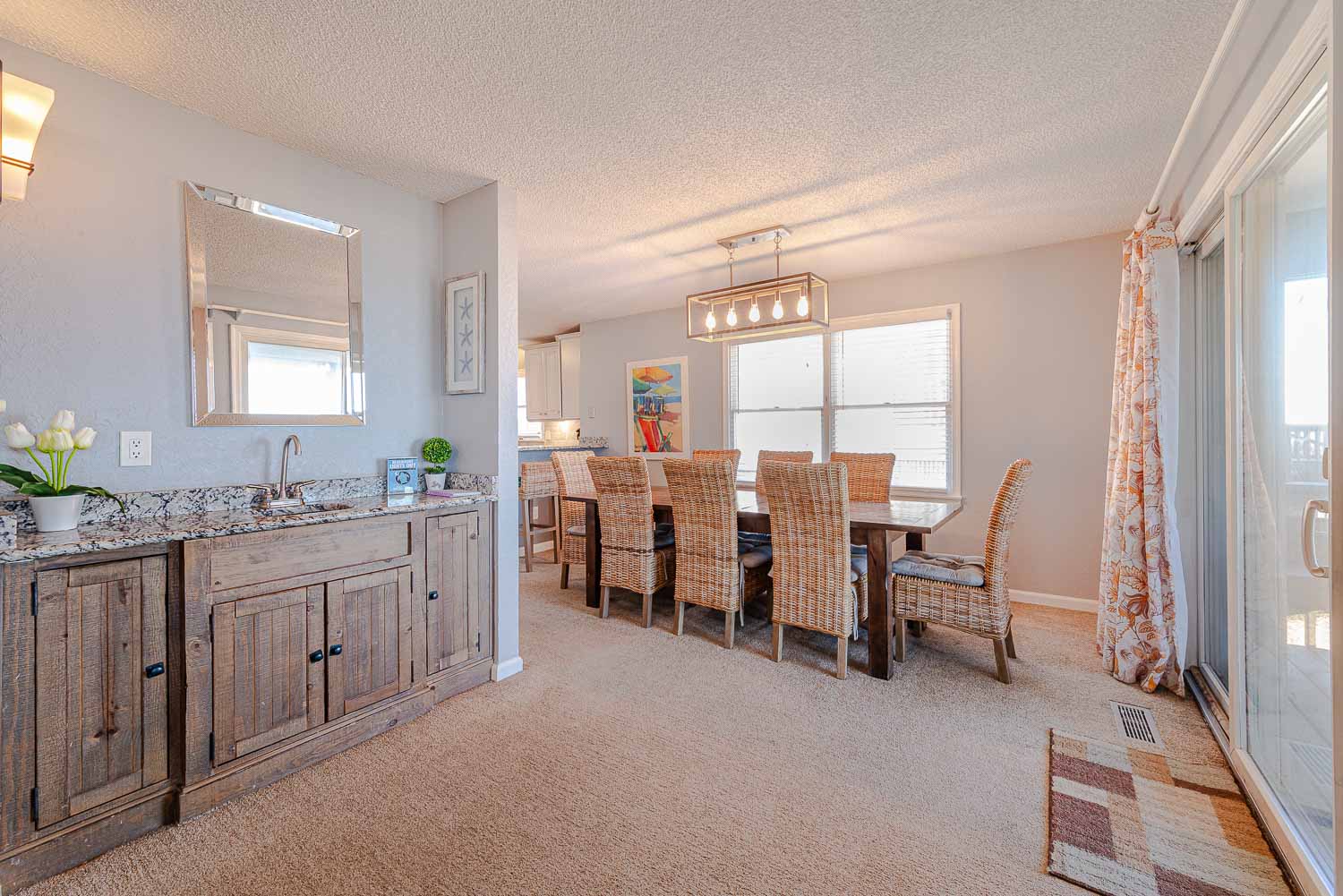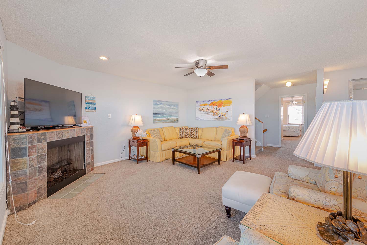 Mid level: Living/Dining/Kitchen, Fabulous Ocean Views, TV, DVD, Half Bath, Wet Bar, Bedroom w/Queen, TV, & DVD, Full Bath, Front Covered Deck, Oceanfront Covered Deck, & Private Walkway to Beach w/Dune Top Deck.
