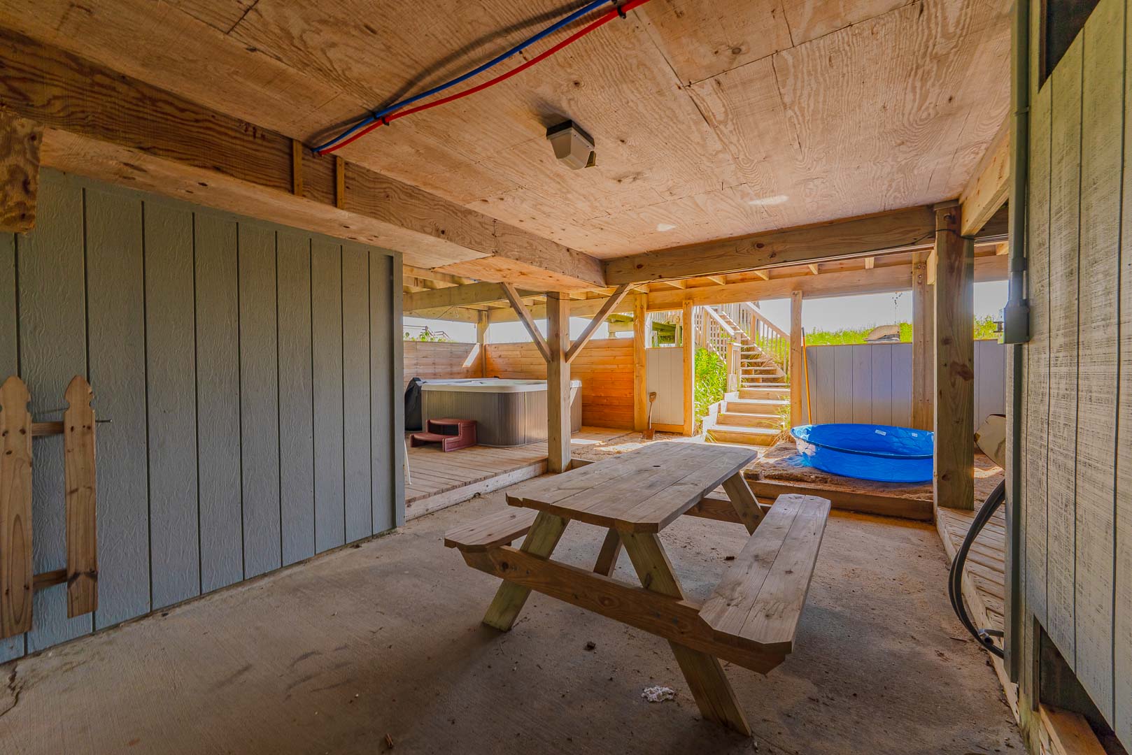 Ground Level: Parking for 3 Cars, Covered Entry to Home, Hot Tub, Fish Cleaning Station, & Enclosed Outside Shower.