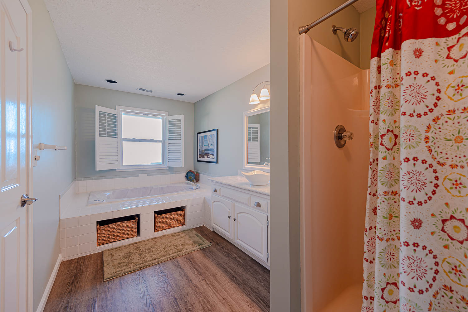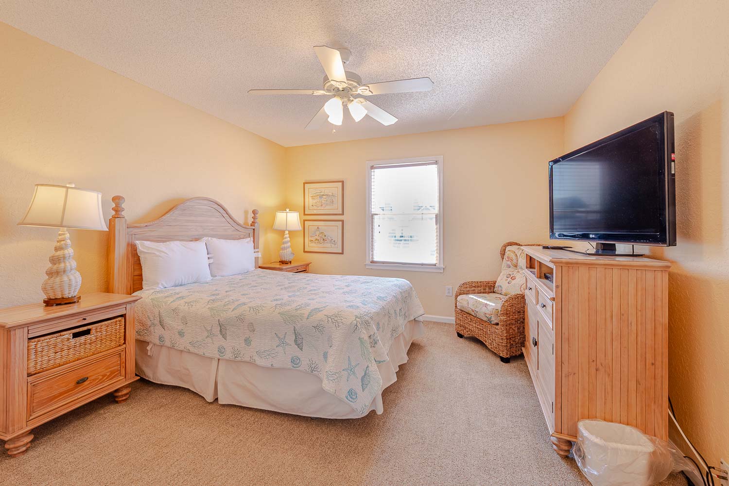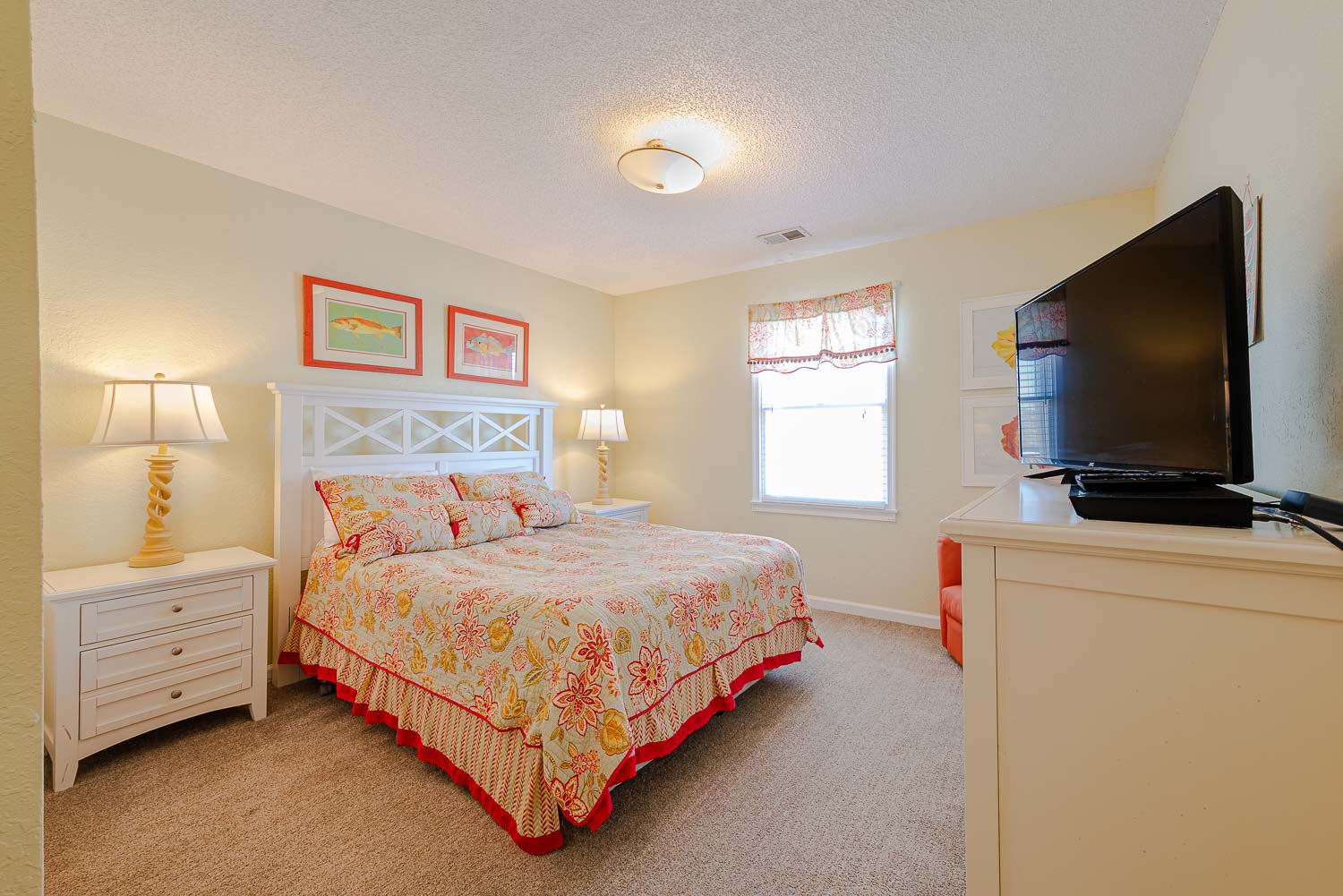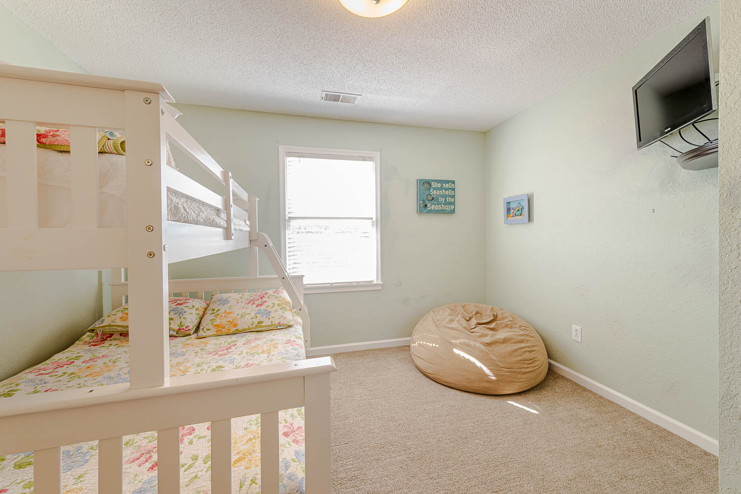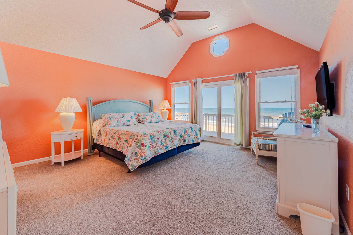 Top Level: 3 Bedrooms (Oceanfront Private Suite w/King, Flat Screen TV, DVD, Full Bath w/Jacuzzi, & Private Sun Deck w/Endless Ocean & Beach Views, 1 w/Queen, TV, & DVD, 1 w/Duo Bunk, TV, & DVD), Full Hall Bath, & Laundry Area.