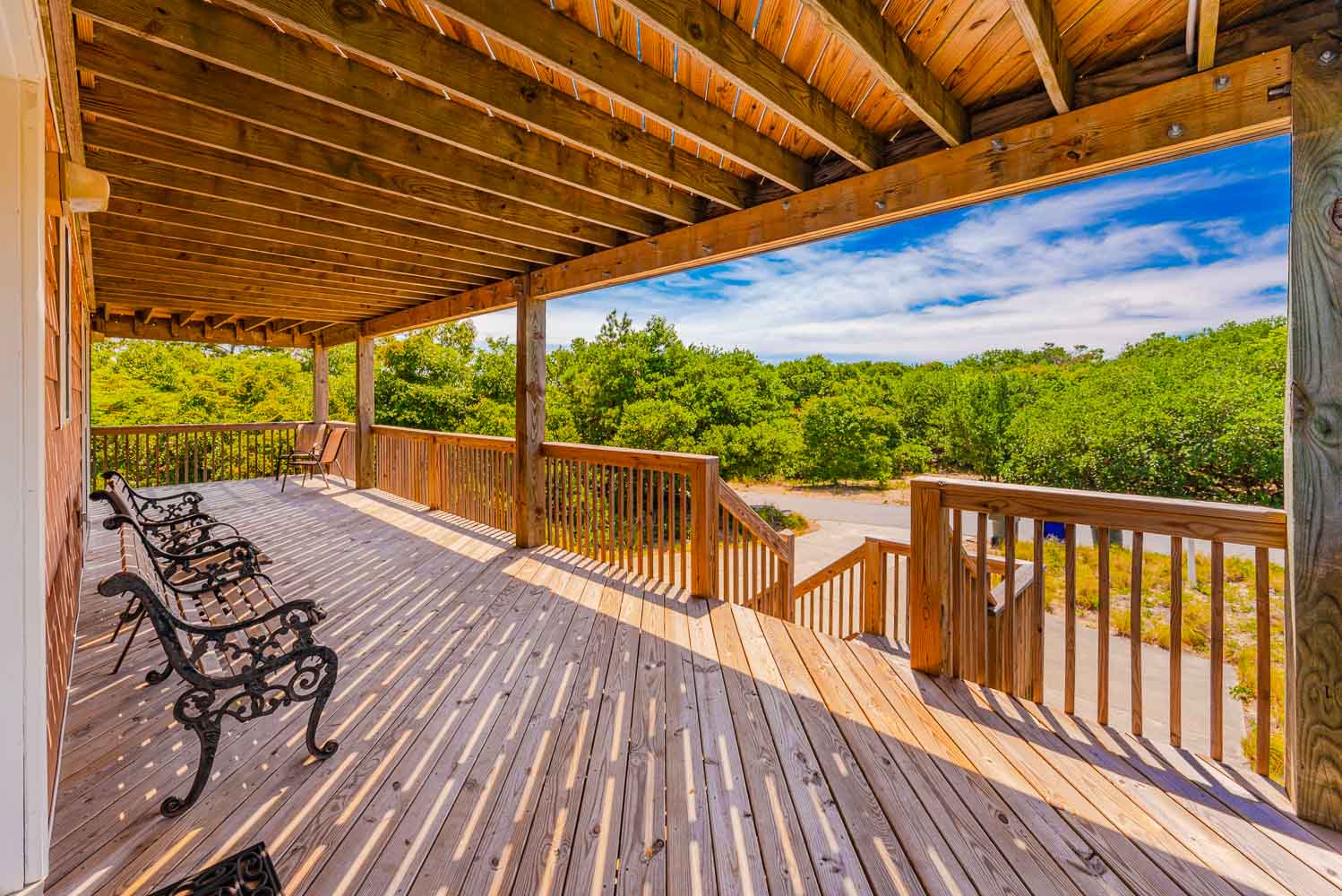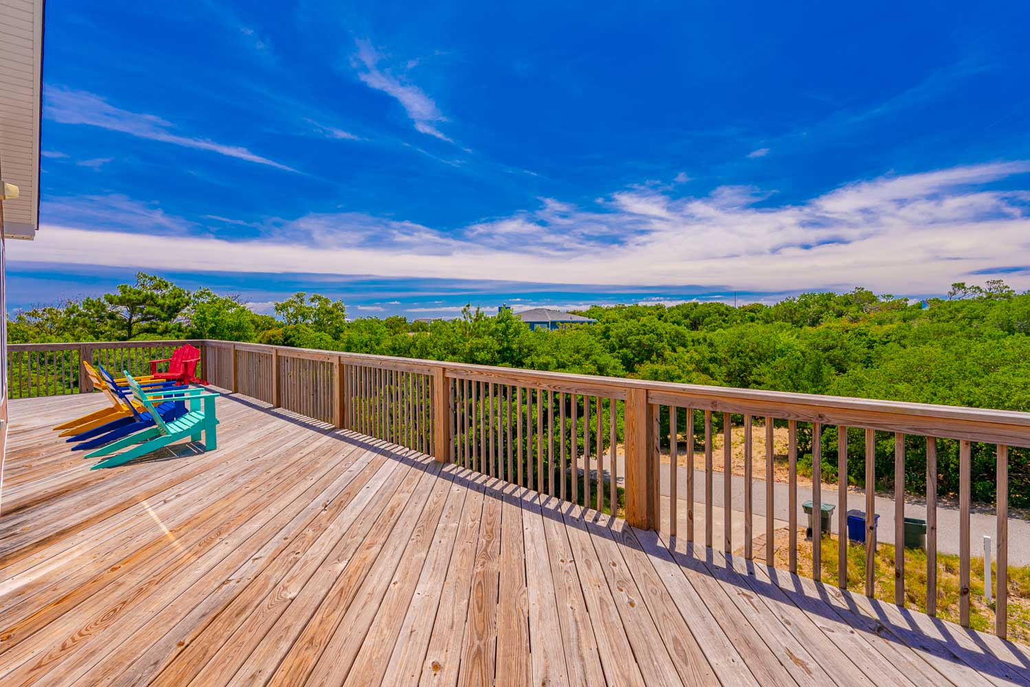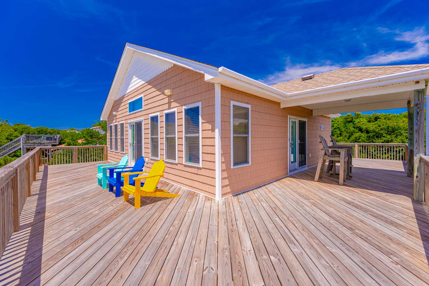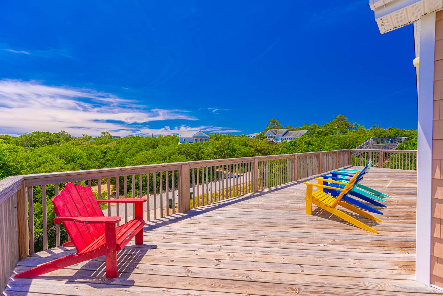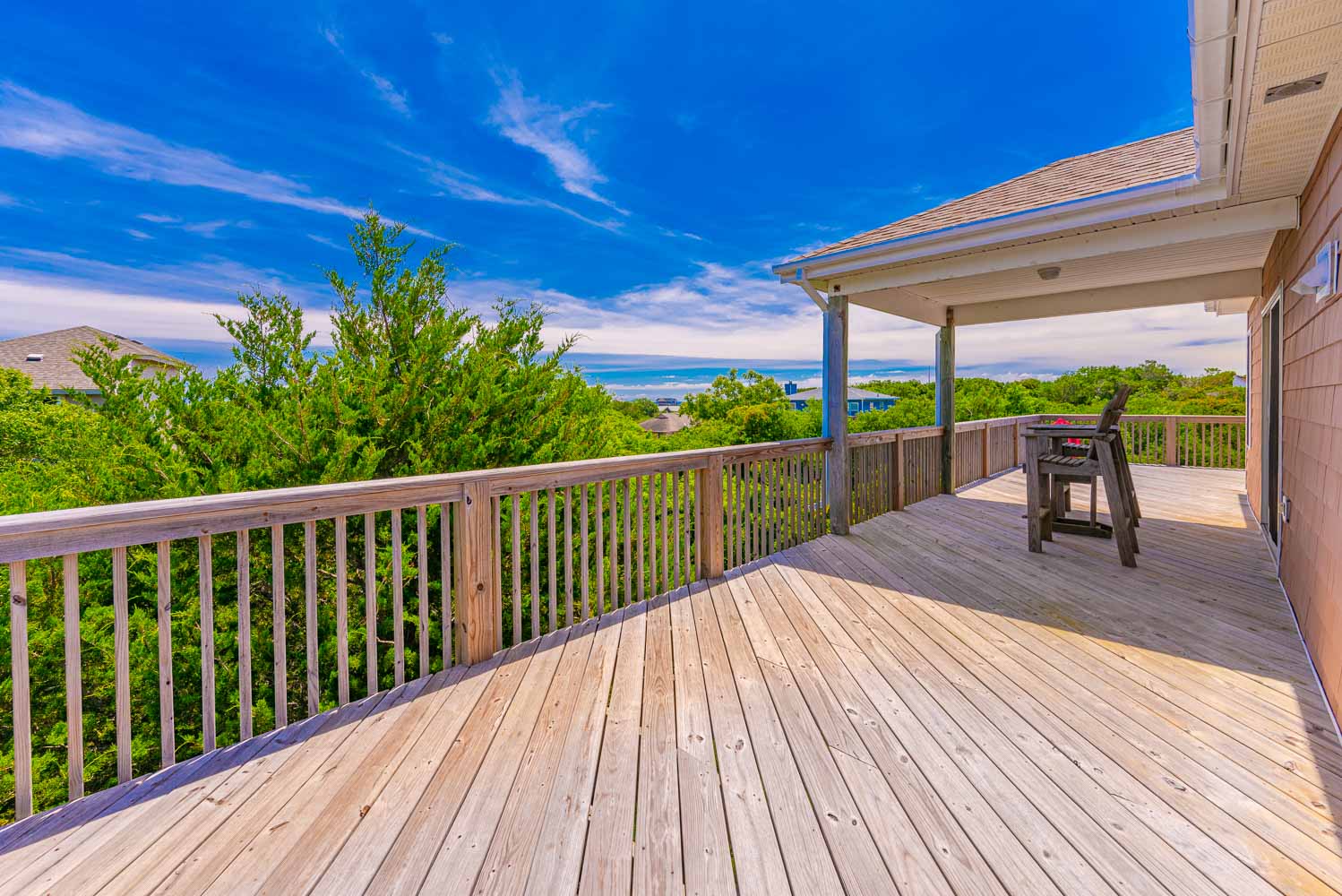 Top Level: Living/Dining/Kitchen Area, Ocean Views, TV, Vaulted Ceilings, Half Bath, Private Suite w/King, TV, Full Bath; Covered Deck, and Sun Deck.