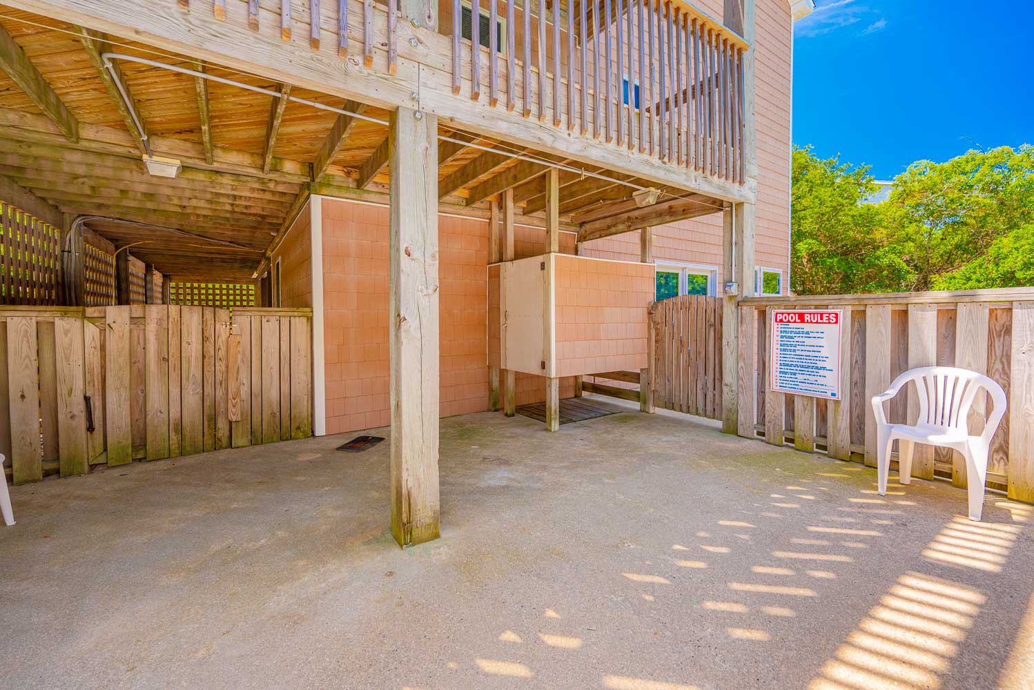 Ground Level: Parking for 4 Cars, Covered Entry, Game Room, TV, Bar, Table Charis; Full Bath, Bedroom w/2 Singles, Laundry Area, Access to Patio Area w/Private 16 x 32 Swimming Pool - Open Seasonally, Enclosed Outside Shower, and Park Grill.