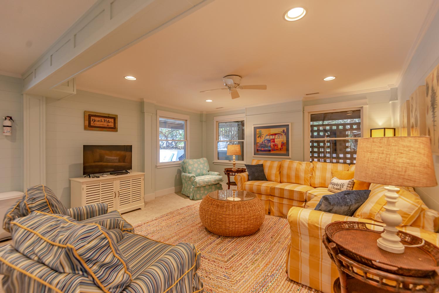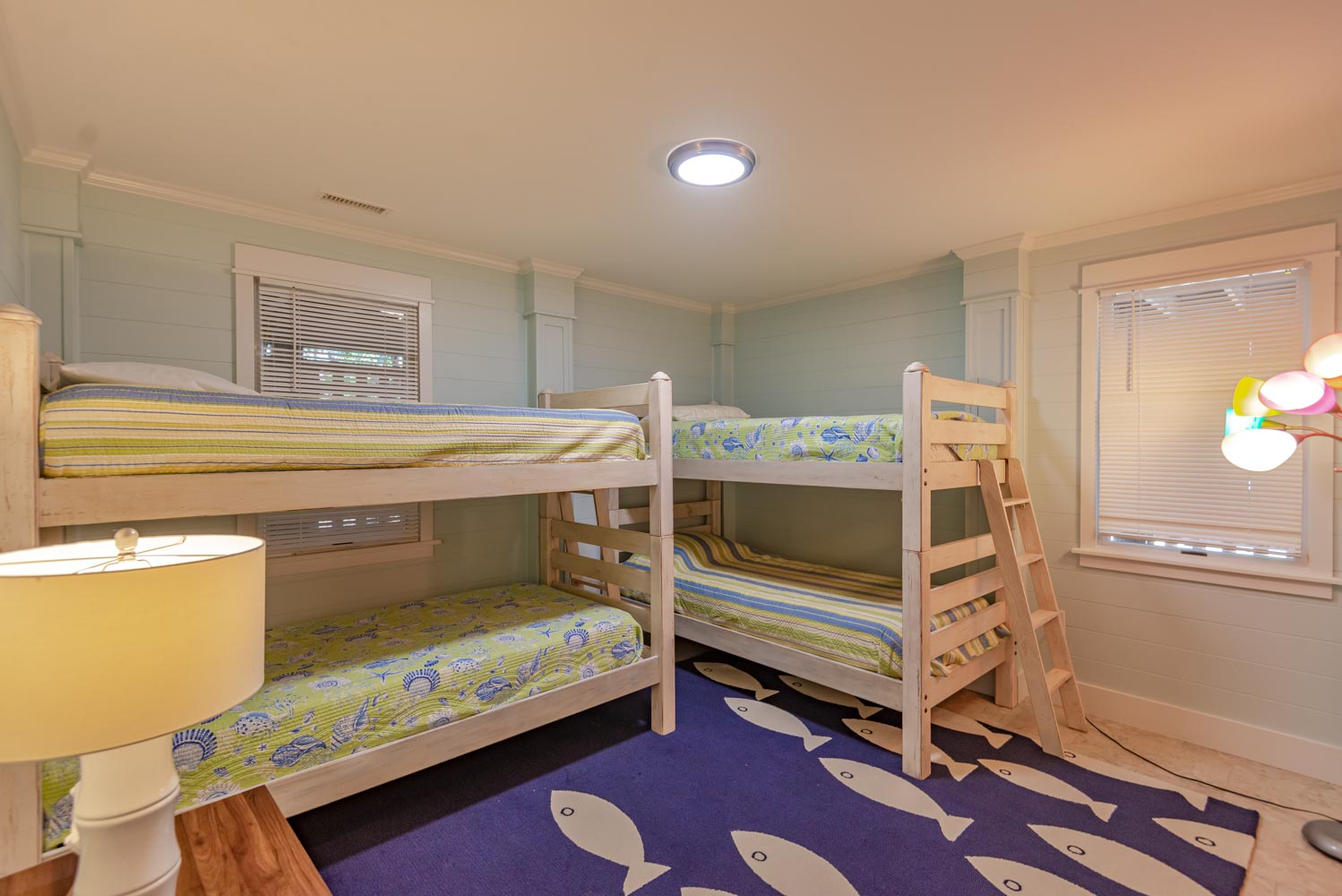 Mid Level: 4 Private Suites (3 w/Queens, TVs, Full Baths w/Tub/Shower; 1 w/2 Singles, Full Bath w/Tub/Shower) and Access to Covered Deck Overlooking Pool Area.