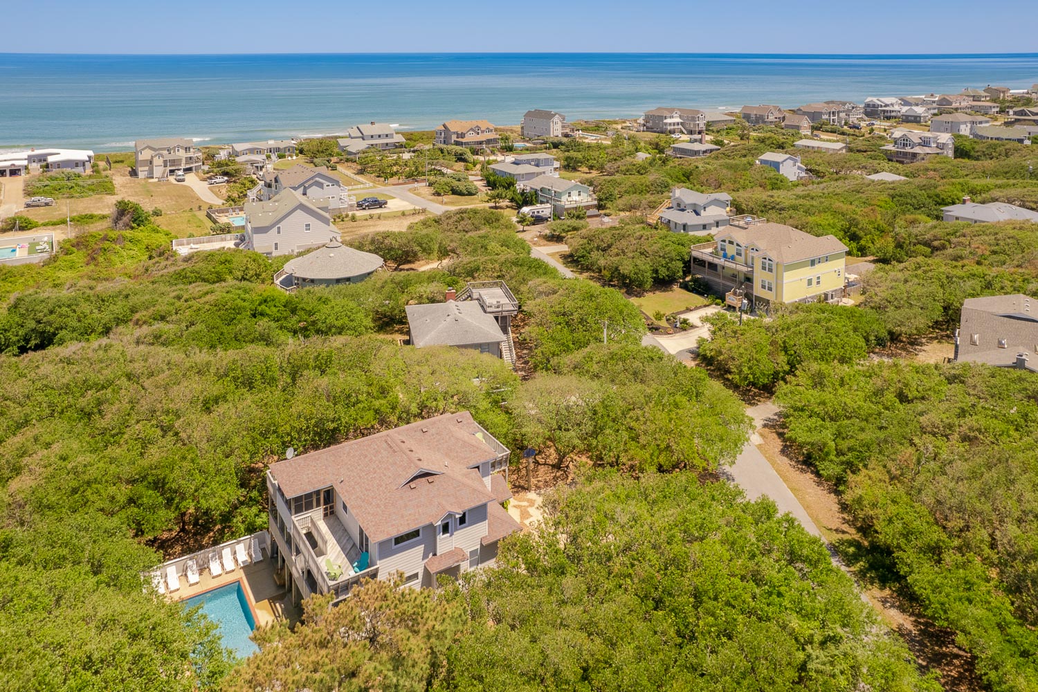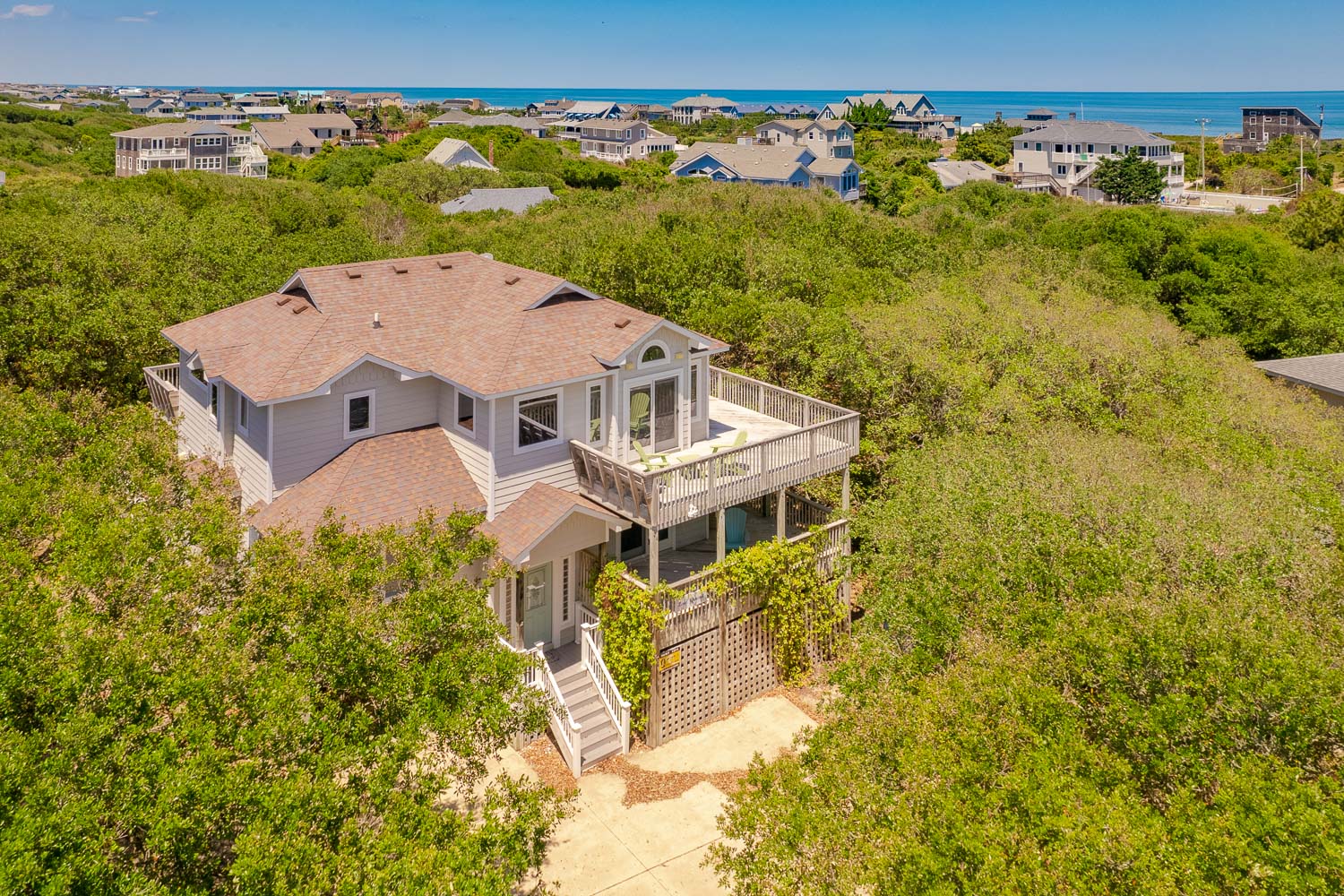 This oceanside gem is just 450 feet from a private community beach access on Third Avenue. It is nestled in live oak trees that provide a private oasis in the popular Sea Crest Village neighborhood. The quiet and peaceful location is only one mile from downtown Duck, making it an ideal choice for you, your family and friends. Absolutely beautiful, this charming coastal themed vacation home invites you to share all the extras. A Member of the Southern Shores Civic Association (SSCA) which provides you w/No Fee Access to 4 Miles of Southern Shores Beaches w/Parking, Boat Launching Area, 3 Soundside Marinas, Soundside Bathing, Beach, and Picnic Area, Sea Oats Park/Playground, and Walking/Biking Trails.