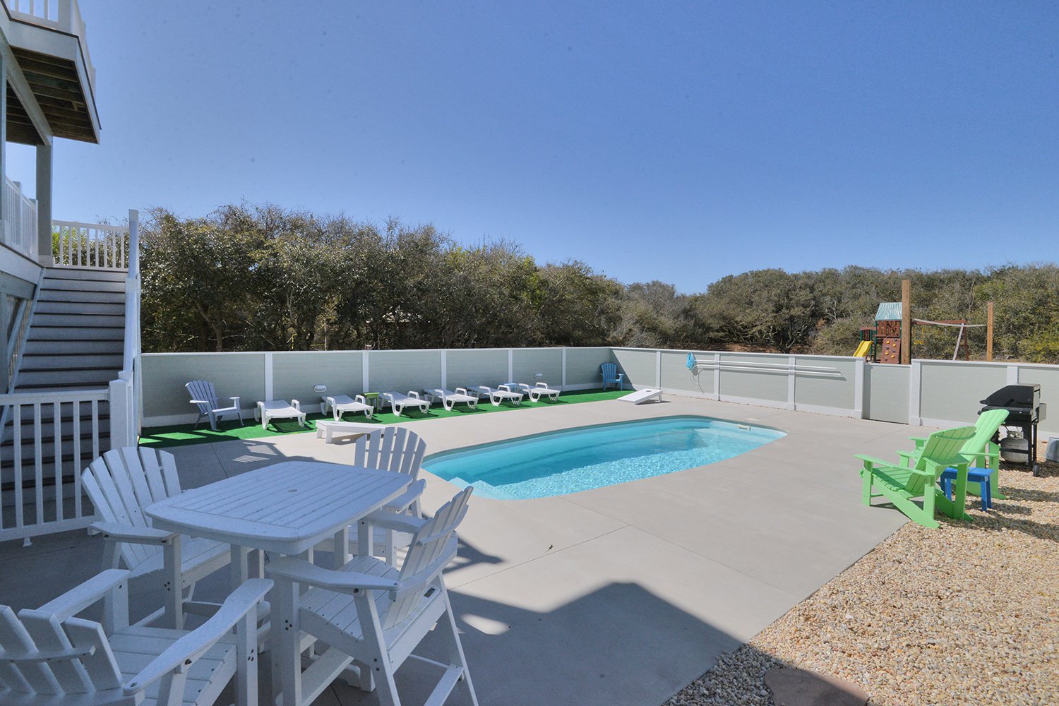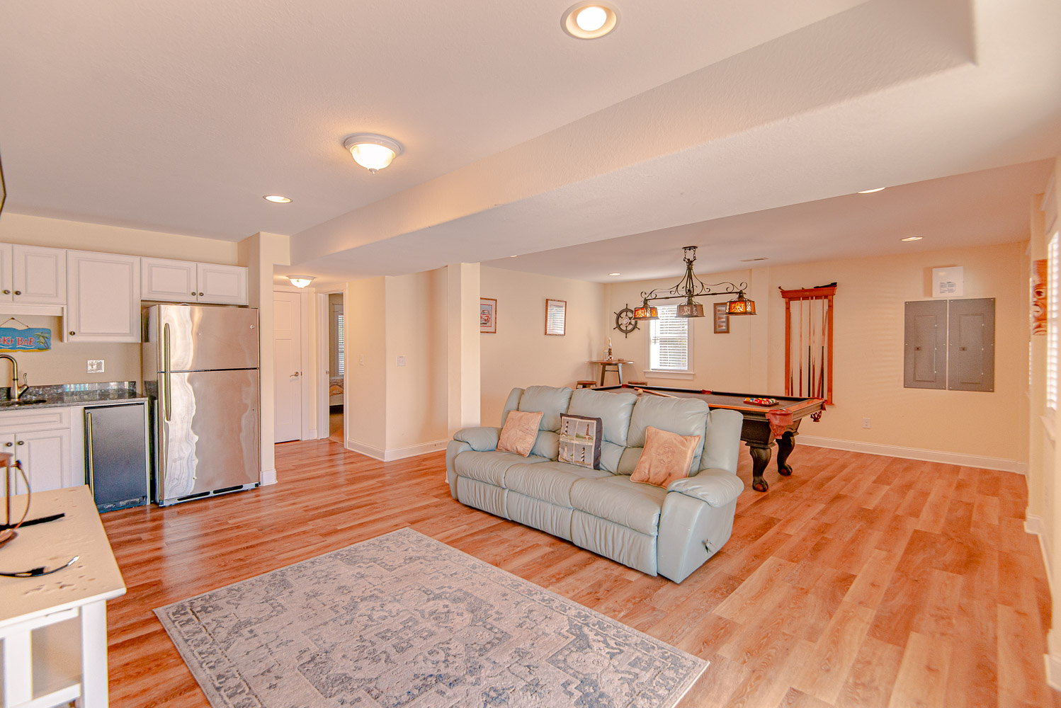 Ground Level: Parking for 6 Cars, Covered Entry, Elevator to All Floors, Large Rec Room w/Pool Table, Wet Bar, Full Size Refrigerator, TV, DVD, 2 Bedrooms (Private Suite w/Double, Duo Bunk, TV, Full Bath; 1 w/Double, Bunk Set, TV), Full Bath, Laundry Area, Access to Private Heated Swimming Pool - Open Seasonally (Can be Heated for $350.00 Per Week, Plus Tax. Please Bear in Mind That Pool Temperature is Subject to Outside Temperatures and Conditions), Hot Tub, Landscaped Yard, Swing Set, Volleyball Court, Enclosed Outside Shower, Gas Grill, and Charcoal Grill.