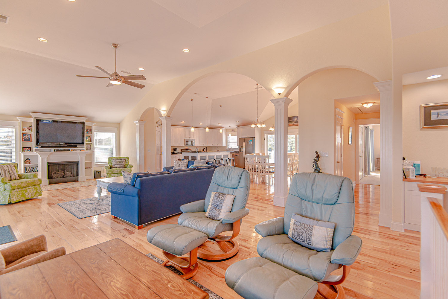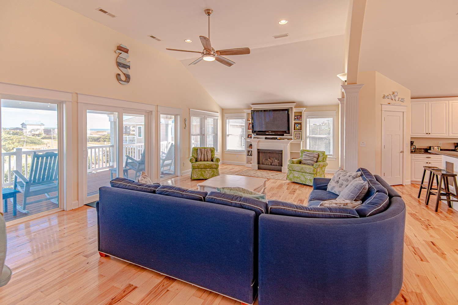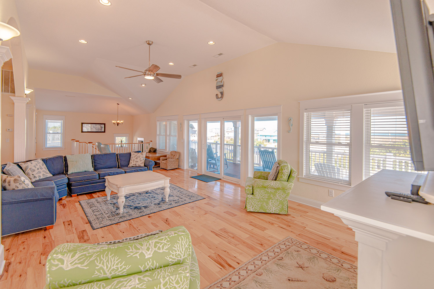 Top Level: Expansive Living/Dining/Kitchen Area, Ocean Views, TV Entertainment System, Gas Fireplace, Breakfast Bar, 2 Dishwashers, Half Bath, Private Suite w/King, TV, Full Bath, 2 Covered Decks, and Sun Deck.