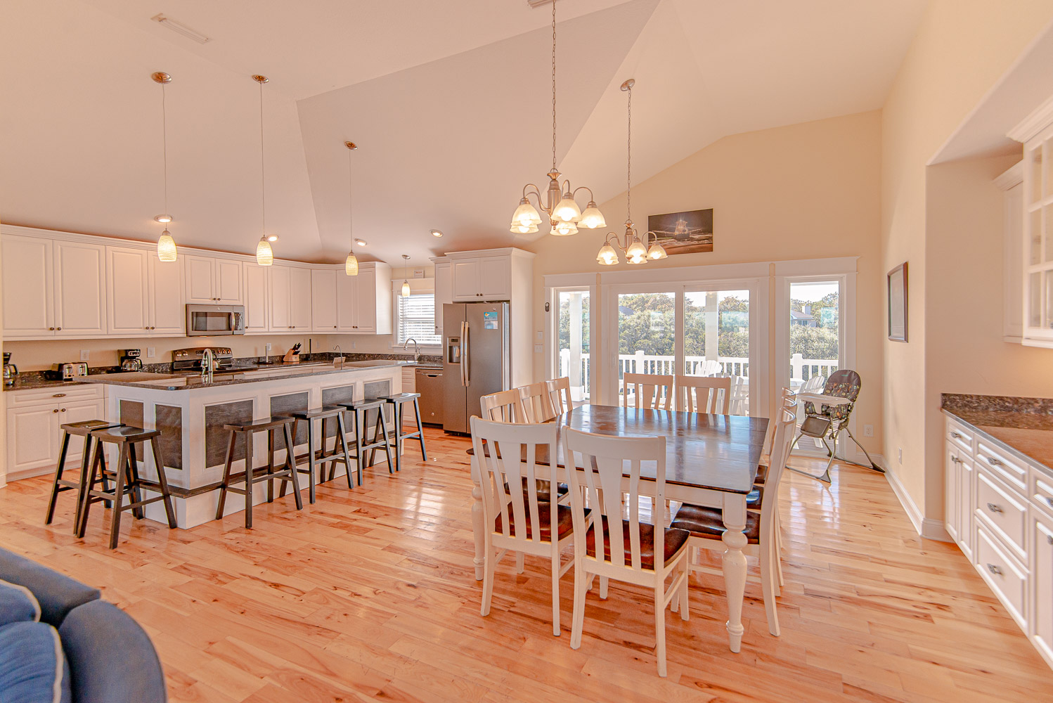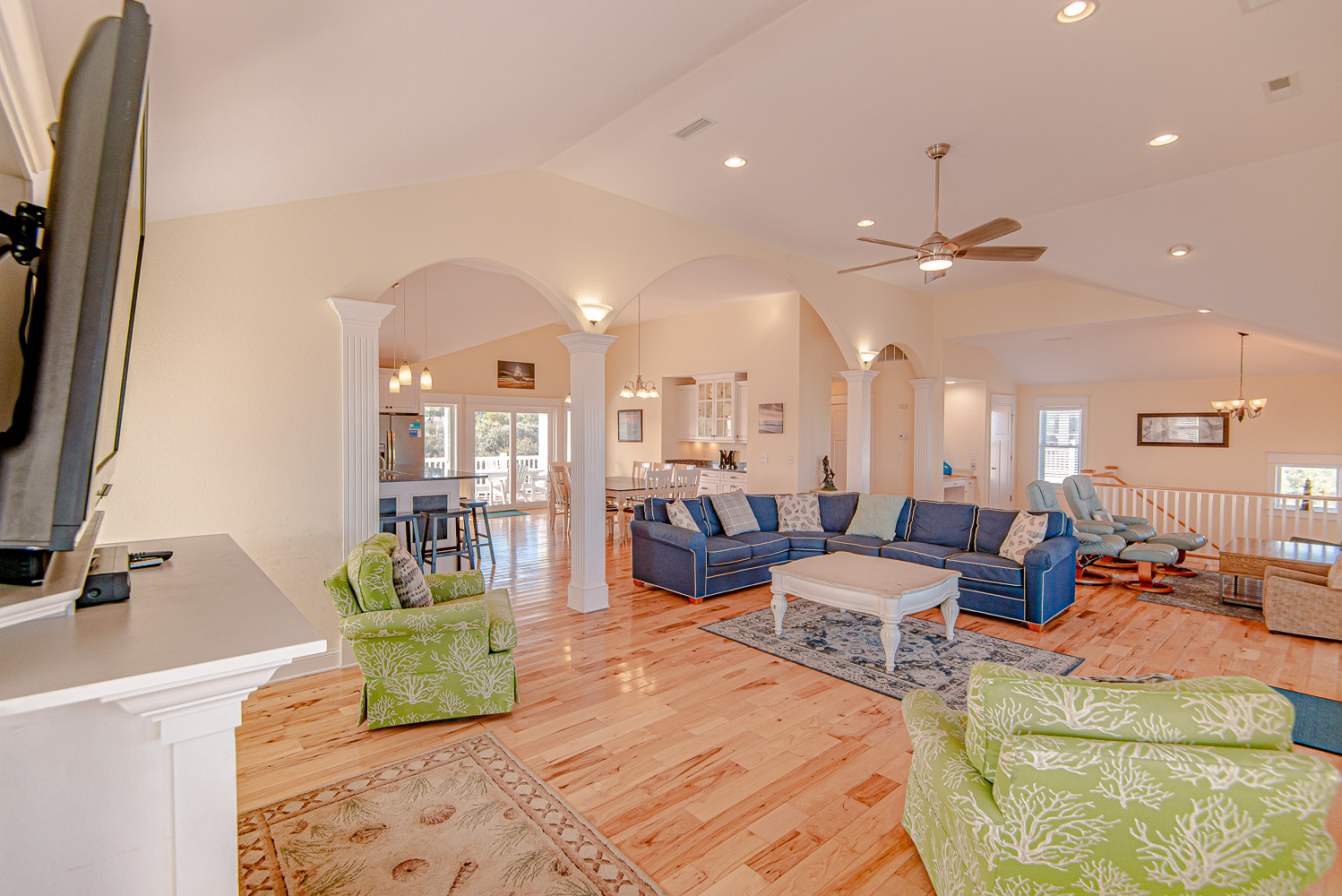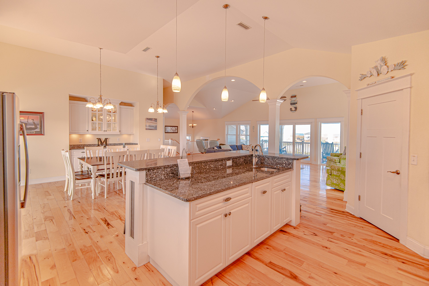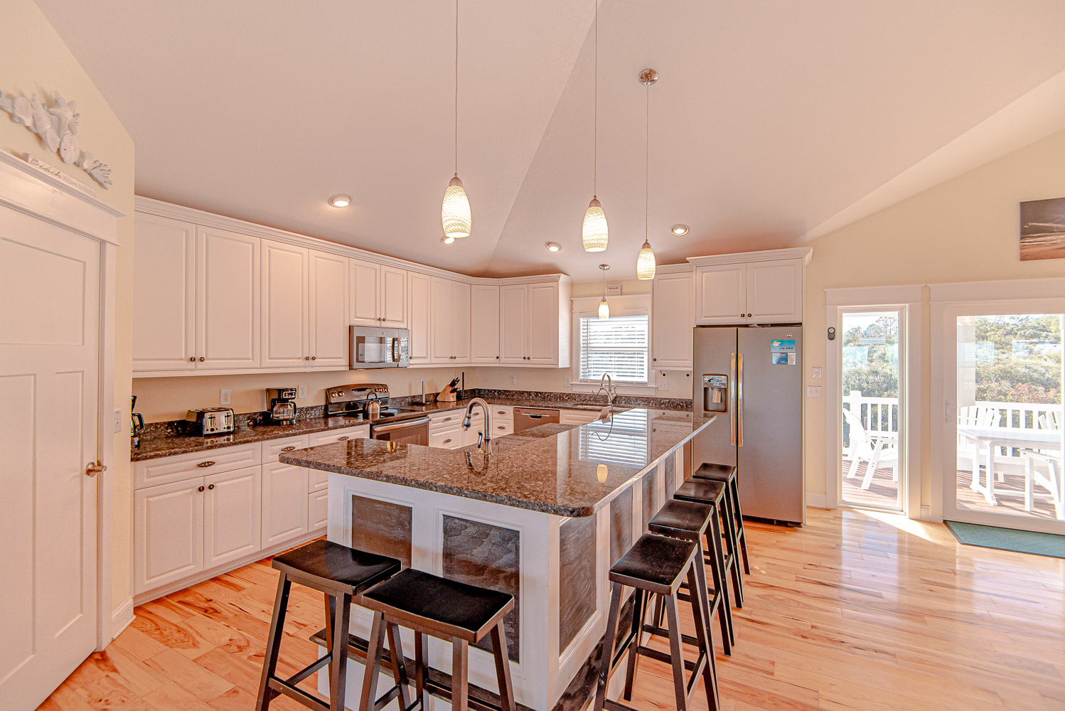 Top Level: Expansive Living/Dining/Kitchen Area, Ocean Views, TV Entertainment System, Gas Fireplace, Breakfast Bar, 2 Dishwashers, Half Bath, Private Suite w/King, TV, Full Bath, 2 Covered Decks, and Sun Deck.