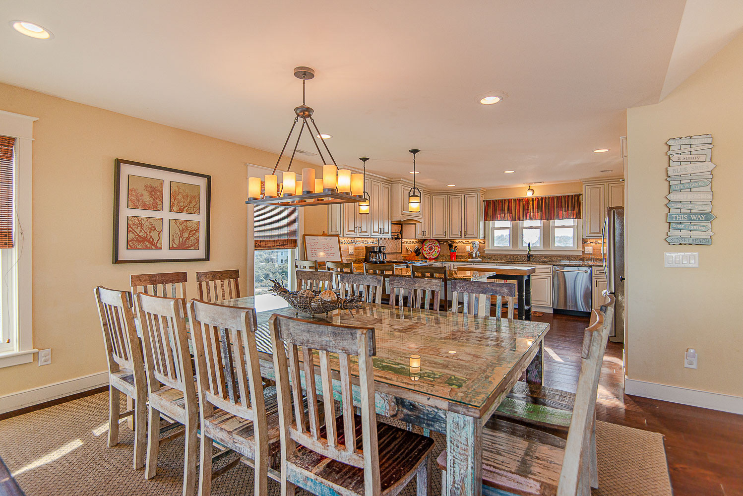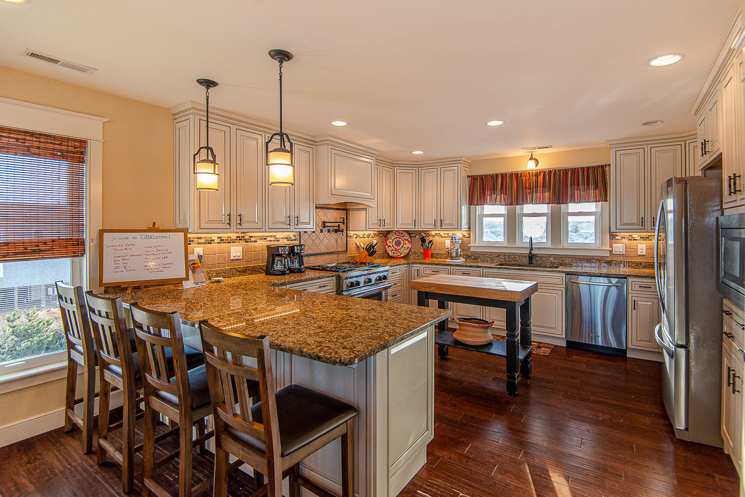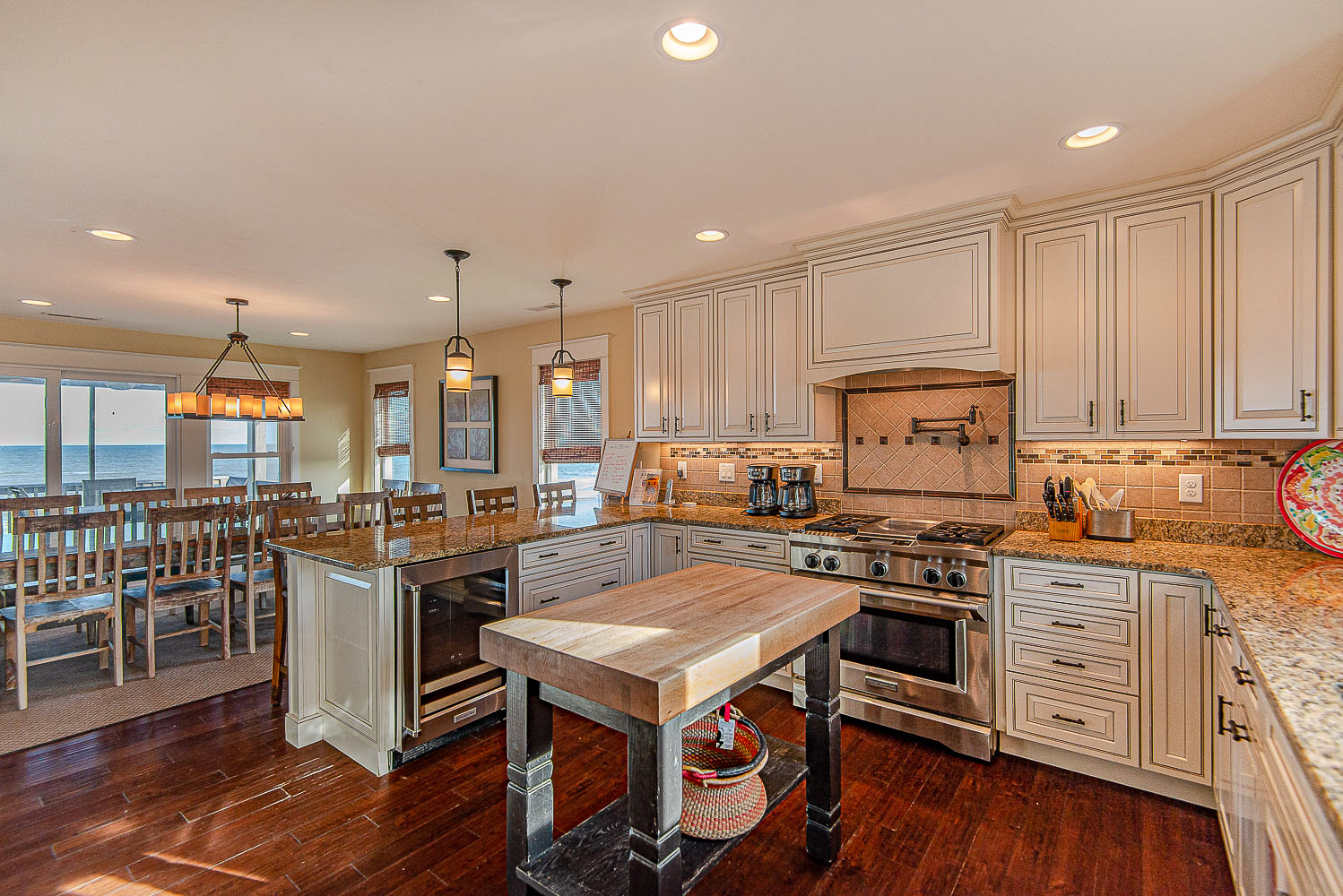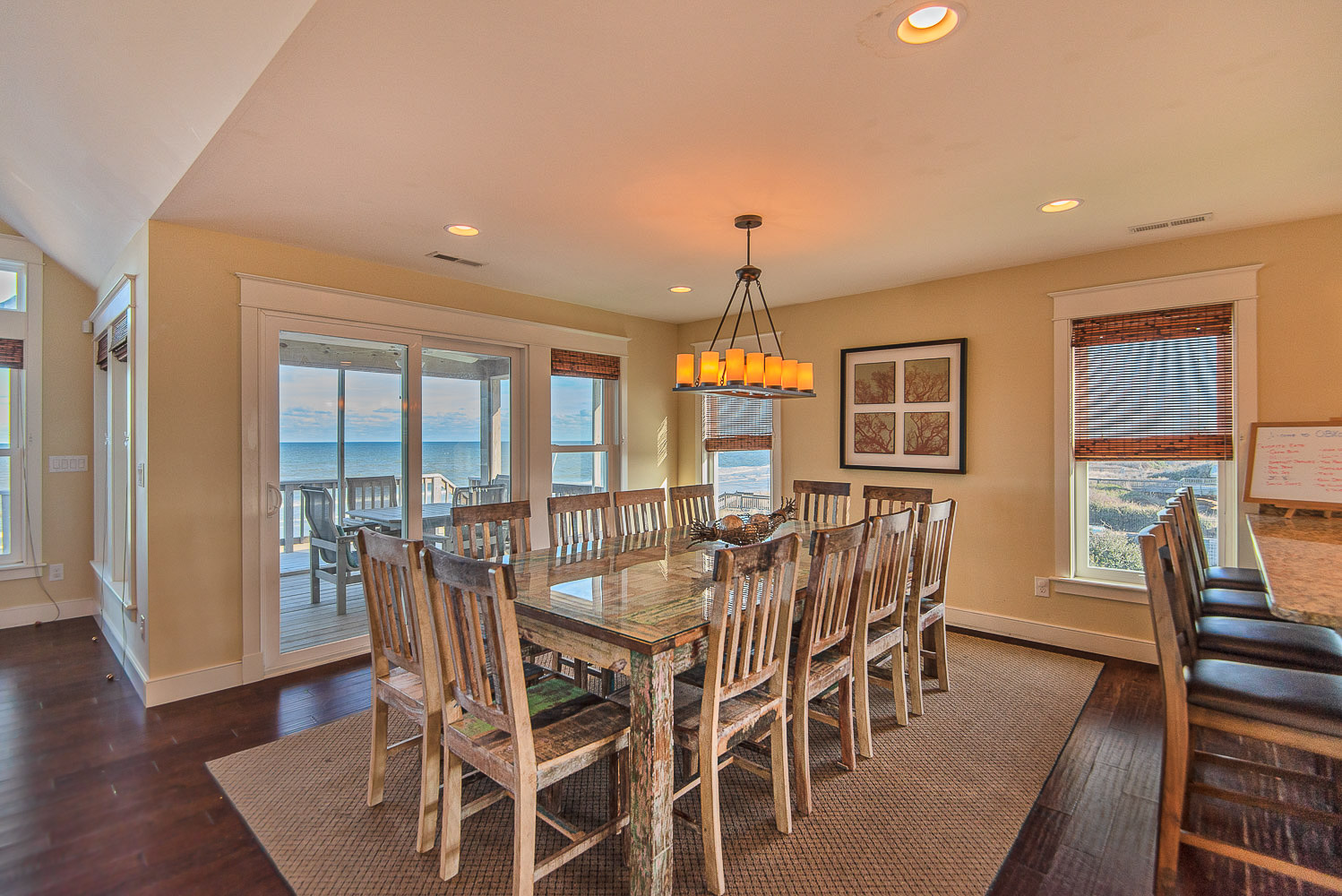 Top Level: Living/Dining/Kitchen Area, Large Flat Screen TV, Gas Fireplace, Ocean and Beach Views, Granite Count Tops, Half Bath, 1 Private Suite w/King, Gas Fireplace, and Full Bath w/Tub and Shower, 1 Private Suite w/King and Full Bath w/Tub, Screen Porch w/Deck Furniture, and Sun Deck.