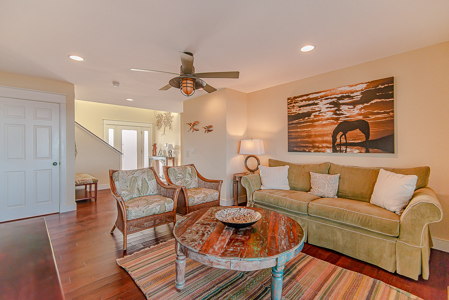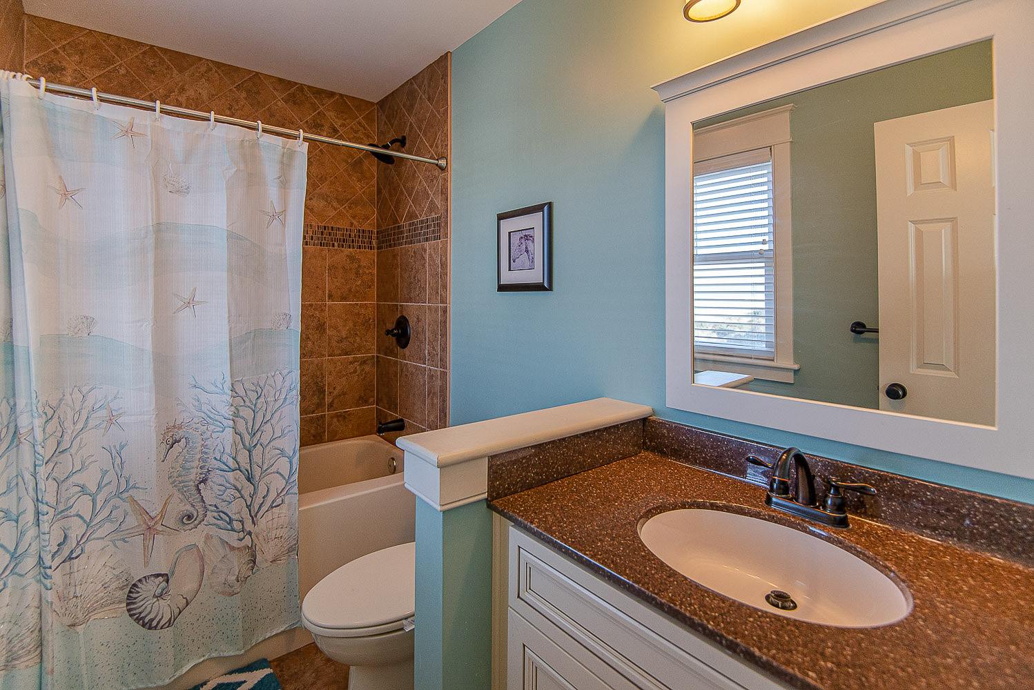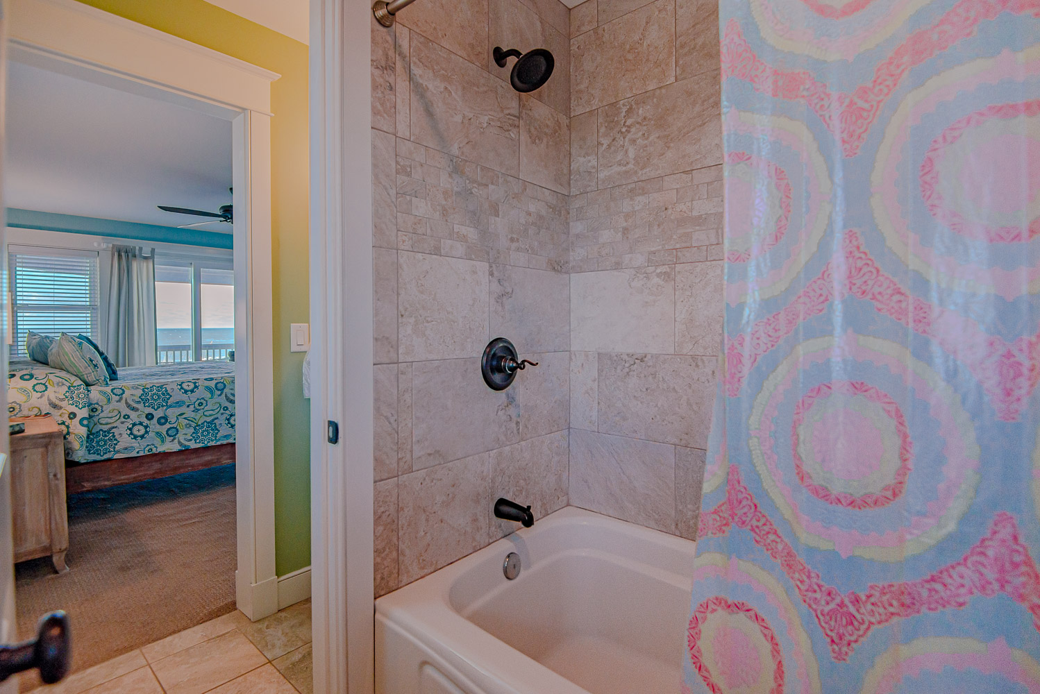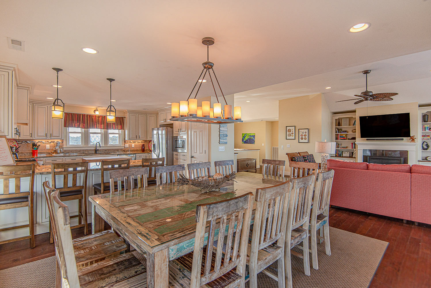 Top Level: Living/Dining/Kitchen Area, Large Flat Screen TV, Gas Fireplace, Ocean and Beach Views, Granite Count Tops, Half Bath, 1 Private Suite w/King, Gas Fireplace, and Full Bath w/Tub and Shower, 1 Private Suite w/King and Full Bath w/Tub, Screen Porch w/Deck Furniture, and Sun Deck.