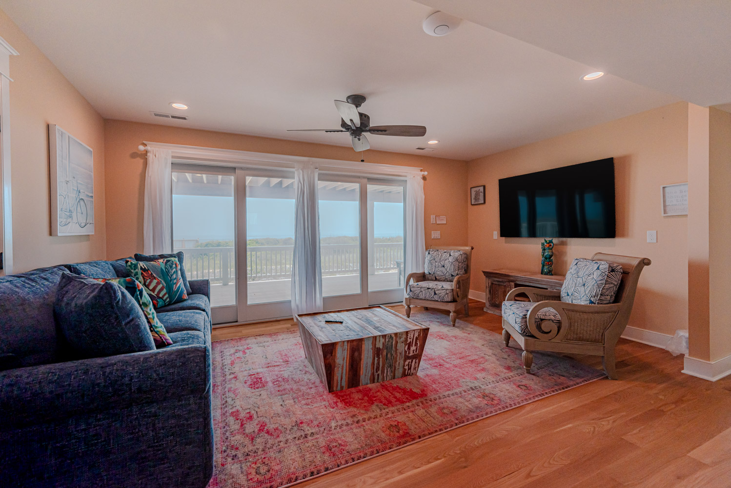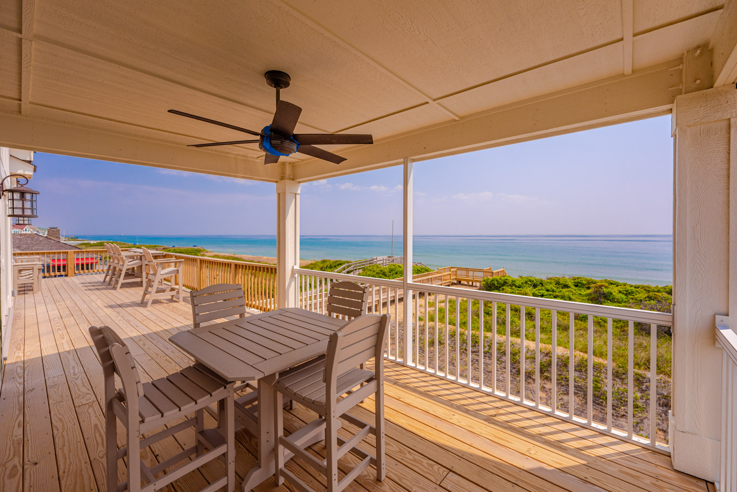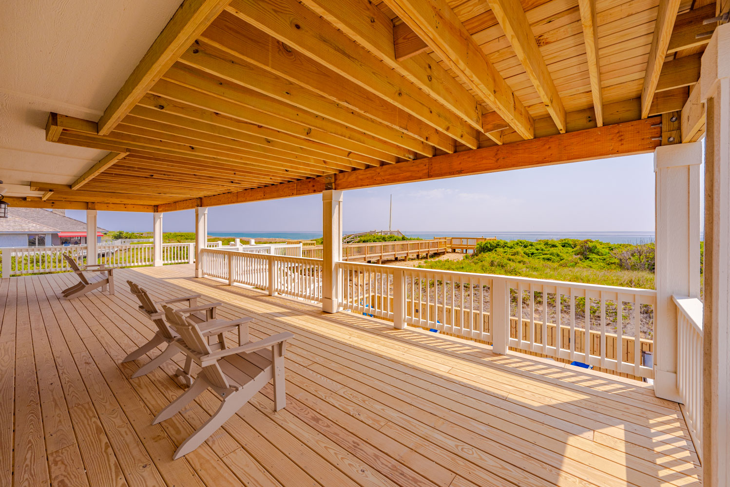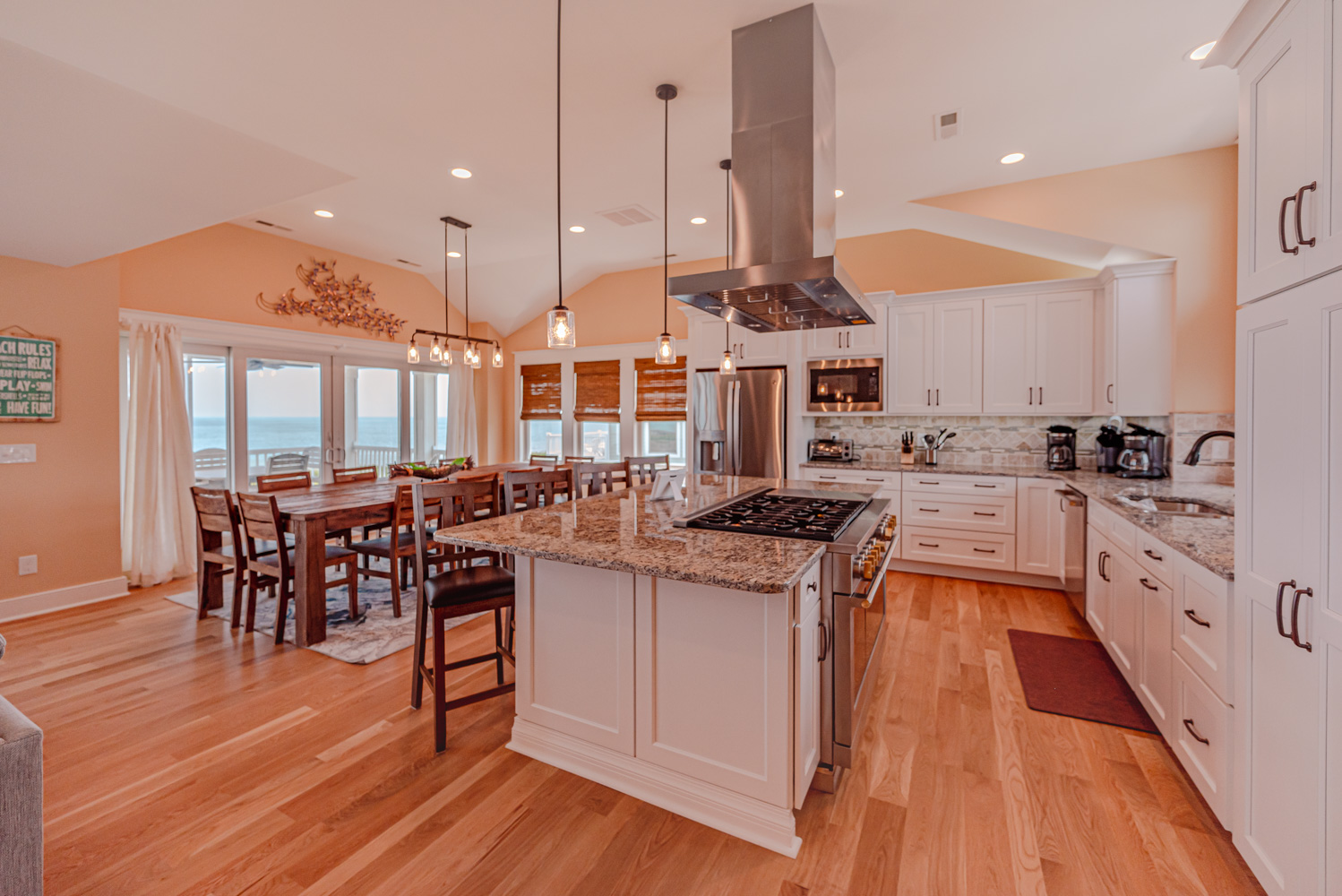 Top Level: Expansive Living Area w/TV, Gas Fireplace, Fully Equipped Kitchen w/Bar Seating for Five (5), Dining Area w/Seating for Ten (10), Half Bath, Outstanding Ocean Views, Private Suite w/King, TV, Gas Fireplace, and Full Bath w/Large Walk-In Shower, Private Suite w/King, TVs, and Full Bath w/Tiled Shower, and Access to Sun Deck w/Deck Furniture and Screened Porch.