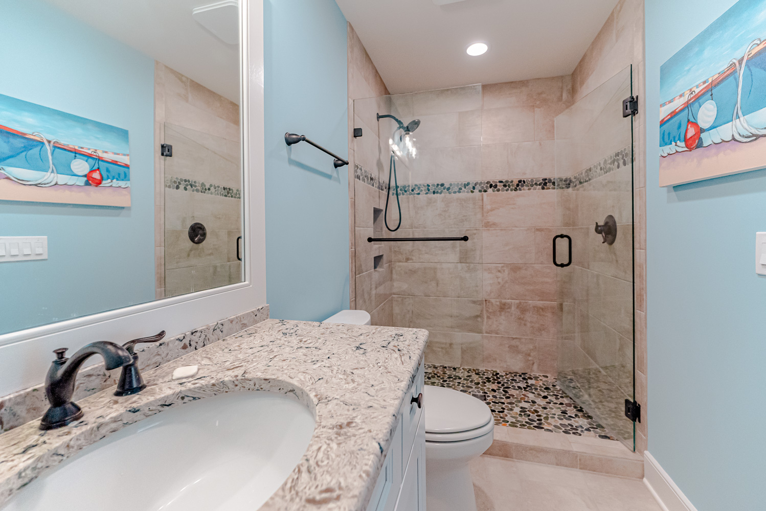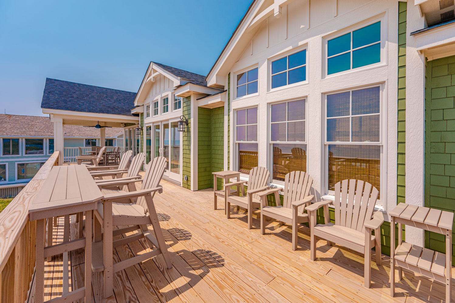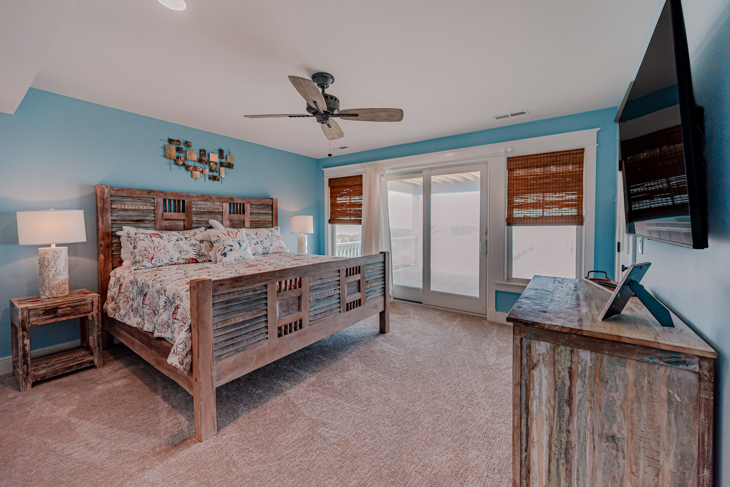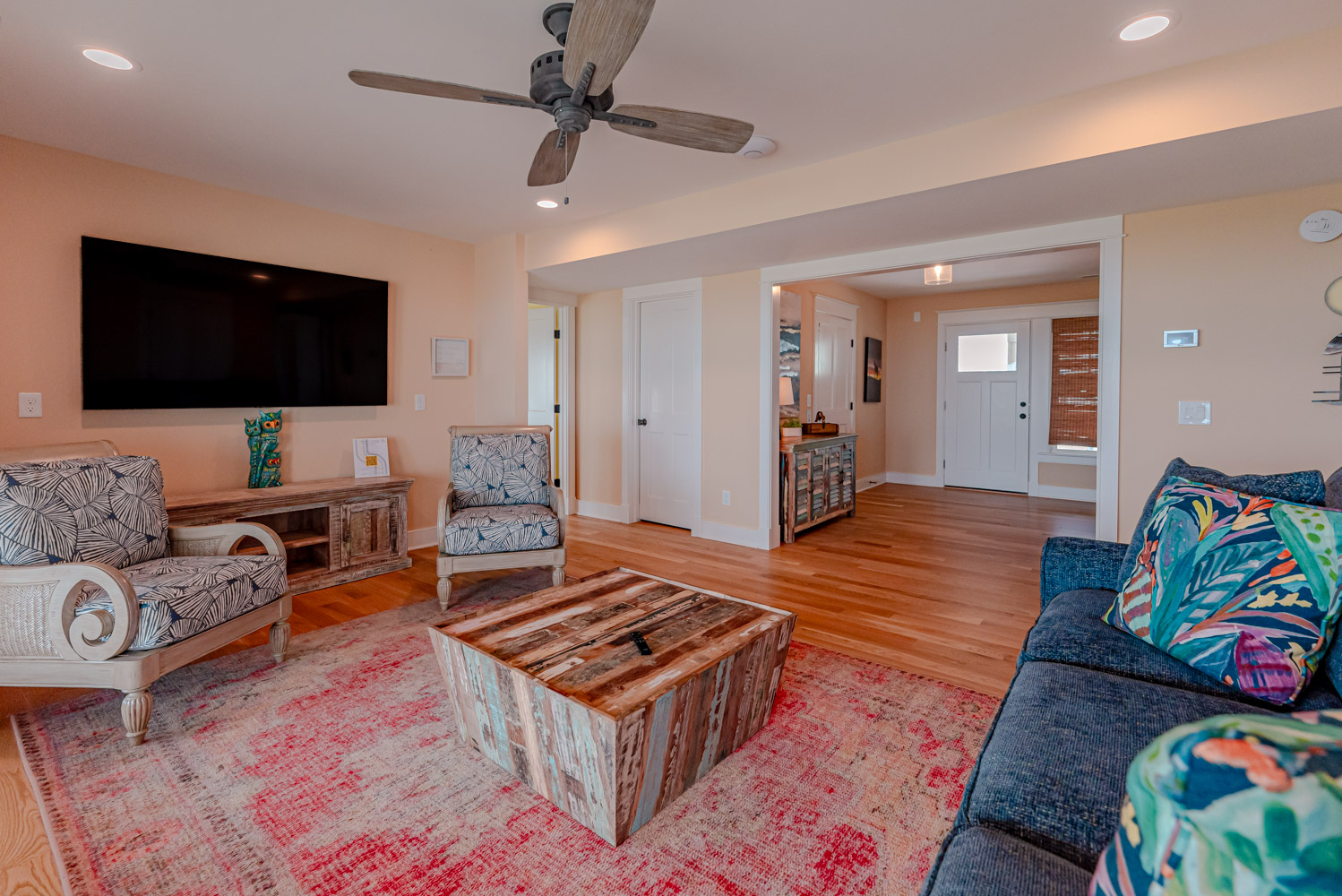 Top Level: Expansive Living Area w/TV, Gas Fireplace, Fully Equipped Kitchen w/Bar Seating for Five (5), Dining Area w/Seating for Ten (10), Half Bath, Outstanding Ocean Views, Private Suite w/King, TV, Gas Fireplace, and Full Bath w/Large Walk-In Shower, Private Suite w/King, TVs, and Full Bath w/Tiled Shower, and Access to Sun Deck w/Deck Furniture and Screened Porch.