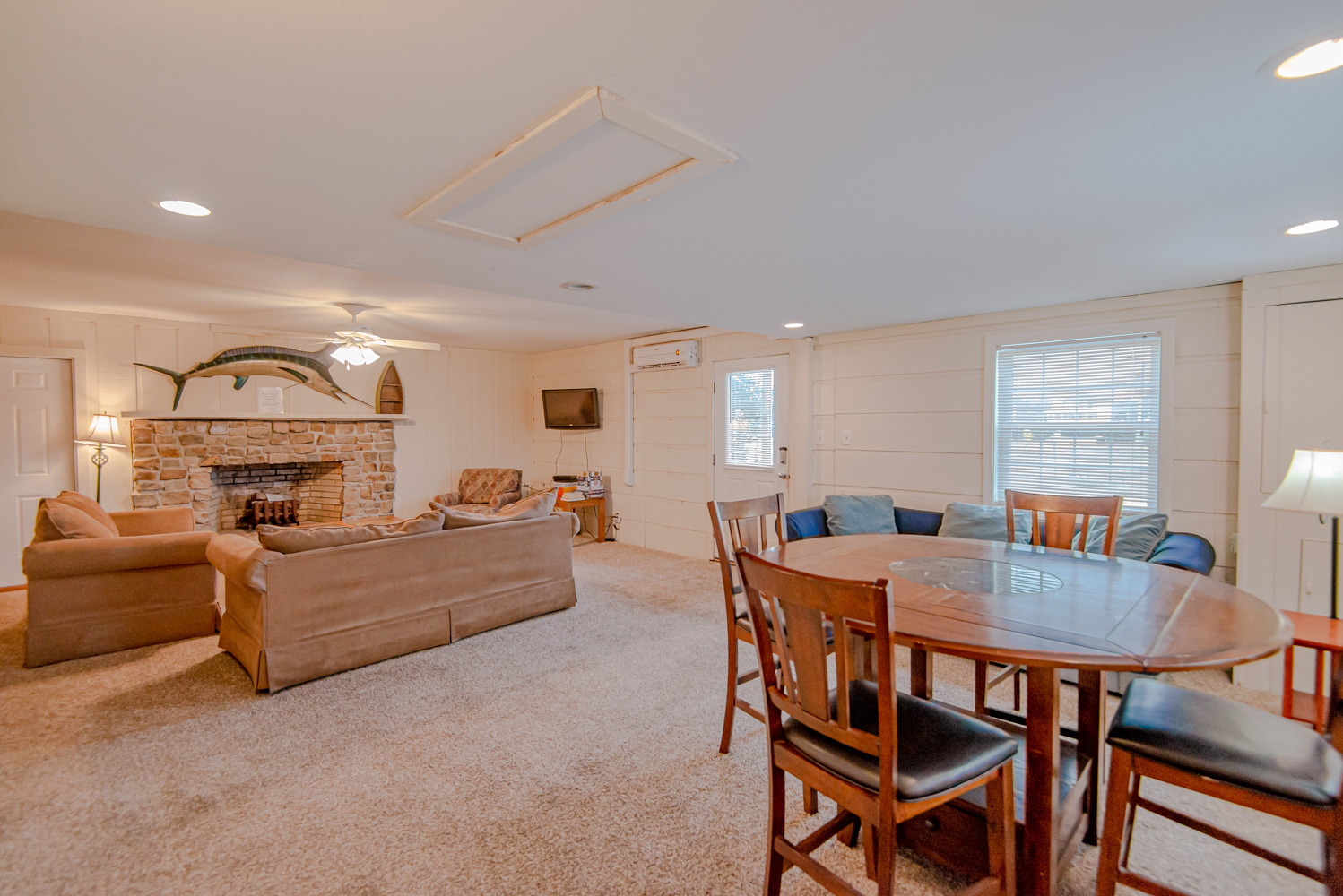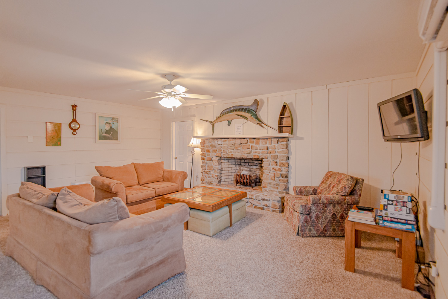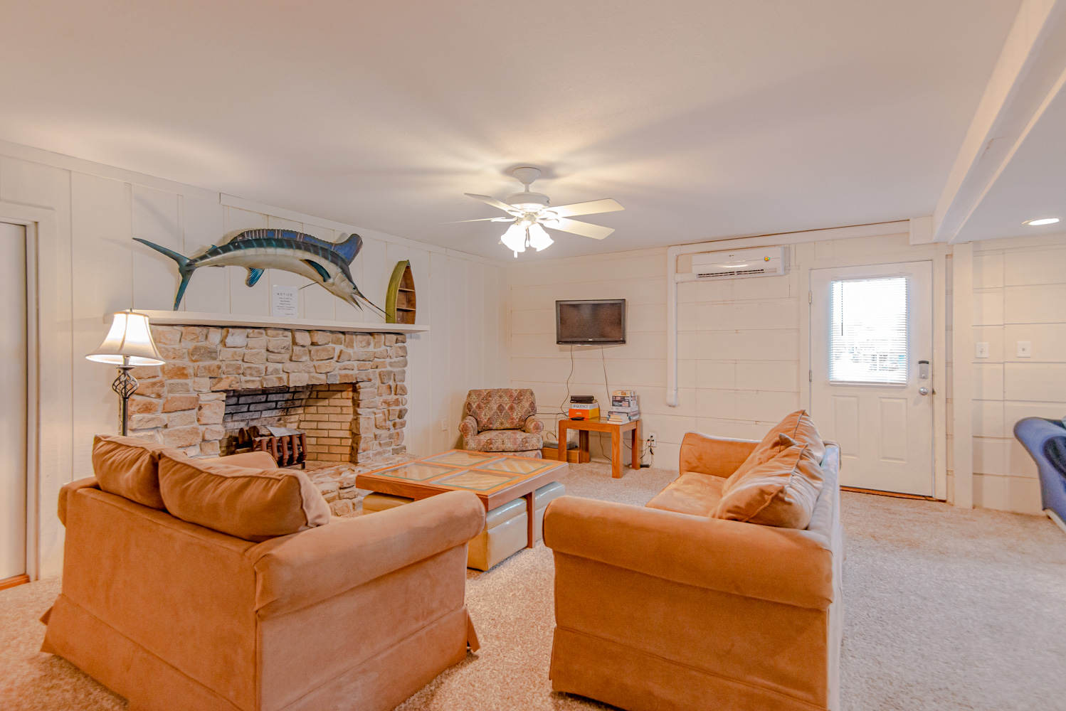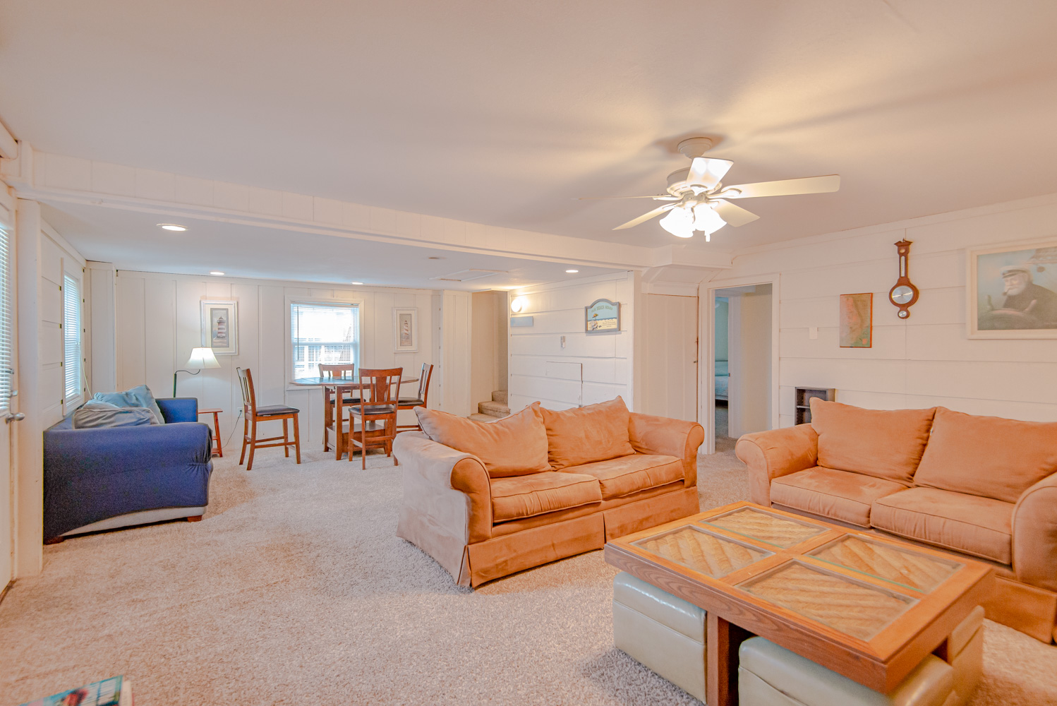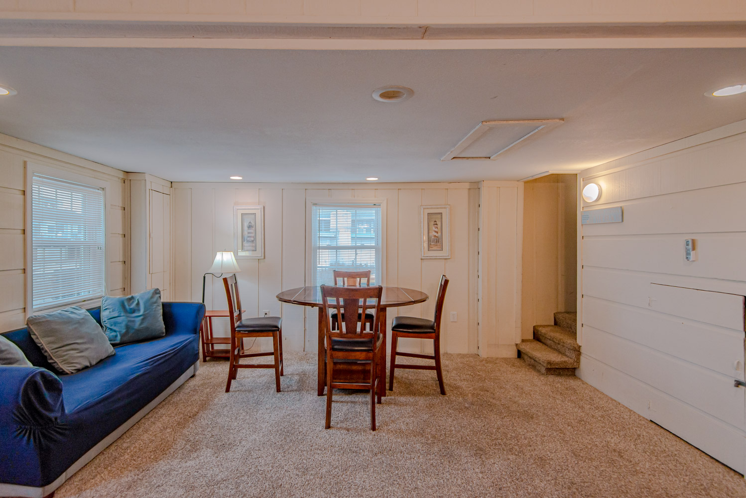 Ground Level: Parking for 3 Cars, Covered Entry, Large Den w/TV & Card Table, 2 Bedrooms (1 w/King & 1 w/2 Queens Washer/Dryer, Full Bath w/Shower Only, & Interior Steps to Top Level.