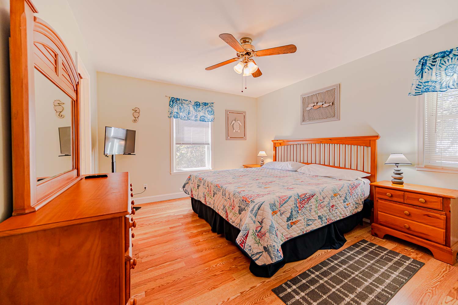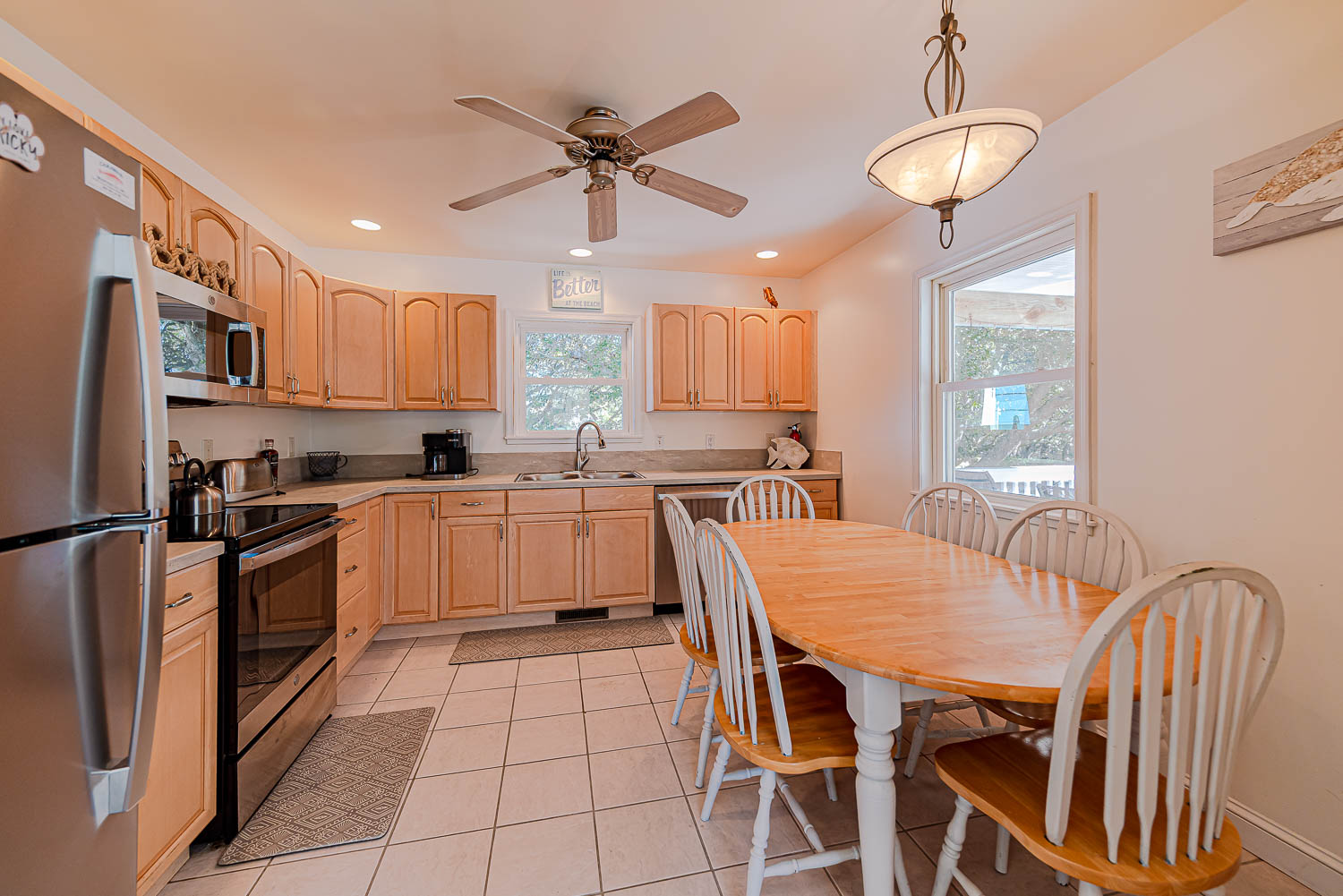 Features include: C/AC-Heat, Washer/Dryer, Dishwasher, Microwave, Keurig Duo Brew, 7 TVs, DVD, Stereo w/CD, Wireless Internet, Baby Equipment (Baby Gate, Pac-n-Play and Booster Seat) and a Member of the Southern Shores Civic Association (SSCA) which provides you w/No Fee Access to 4 Miles of Southern Shores Beaches w/Parking, Boat Launching Area, 3 Soundside Marinas, Soundside Beach, and Picnic Area, Sea Oats Park/Playground, and Walking/Biking Trails. Member of SSCA Racquet Club. Two Mature Dogs Allowed w/Fees. This is a Non-Smoking Unit.