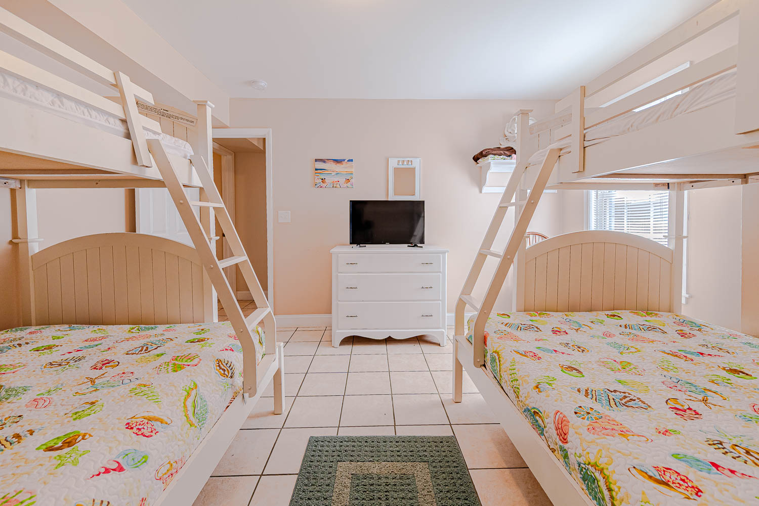 Top Level: Living/Dining/Kitchen Area, TV, 3 Bedrooms (Private Suite w/King, TV, Full Bath; 1 w/Queen, TV; 1 w/Double, TV), Hall Full Bath, Covered Deck, and Sun Deck.